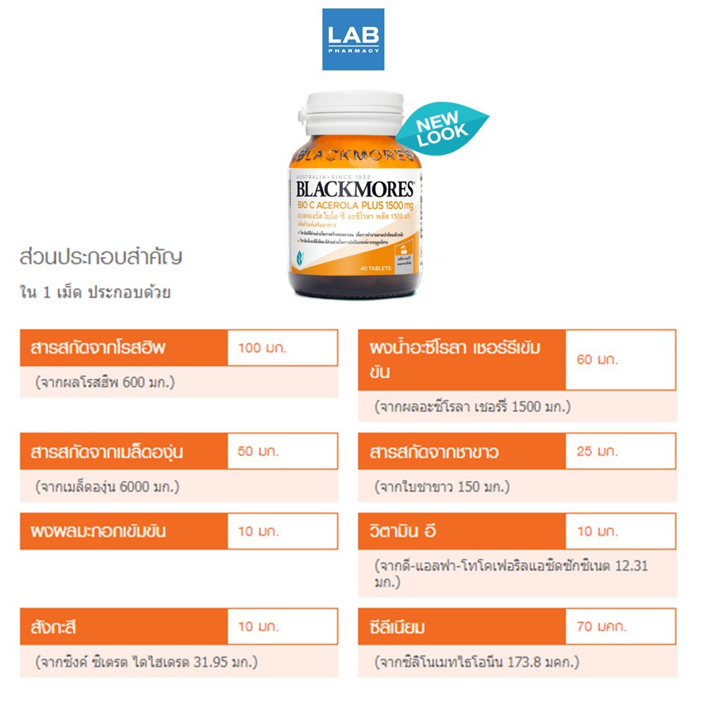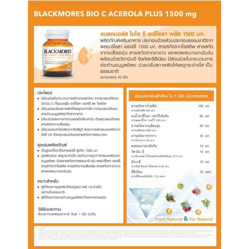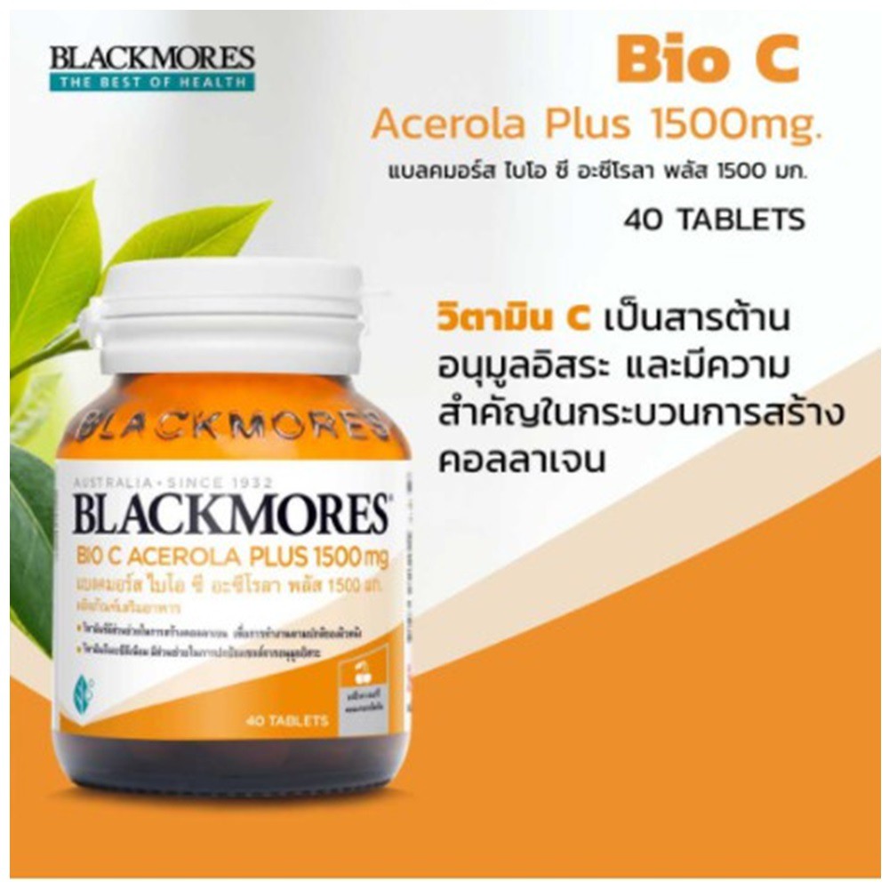 Blackmores Bio C Acerola PLUS 1500 mg (Dietary supplement) 40 Tablets - แบลคมอร์ส ไบโอ ซี อะซีโรลา พลัส 1500 มก.