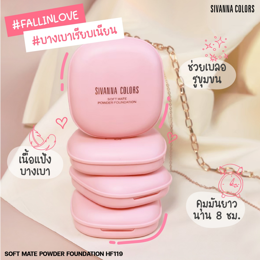 แป้งพัฟผสมรองพื้น ซีเวนน่า คัลเลอร์สS Sivanna Colors Fall In love Soft Mate Powder Foundation HF119