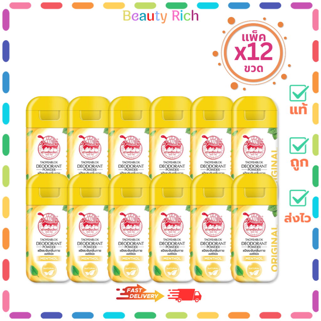 (แพ็ค 12 ขวด) Taoyeablok Deodorant Powder – แป้งระงับกลิ่นกายไวท์เทนนิ่ง #MENTHOL (22 g.)