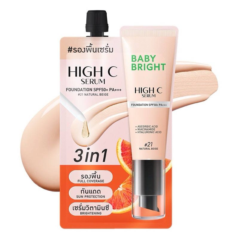 ส่งฟรี/มีไลฟ์ (กล่องx6) Baby Bright High C Serum ไฮซีเซรั่มฟาวเดชั่น SPF50+ PA+++ เบบี้ไบร์ท 3IN1 รองพื้น กันแดด