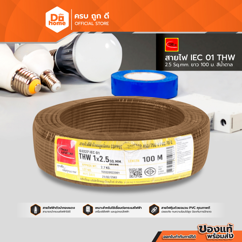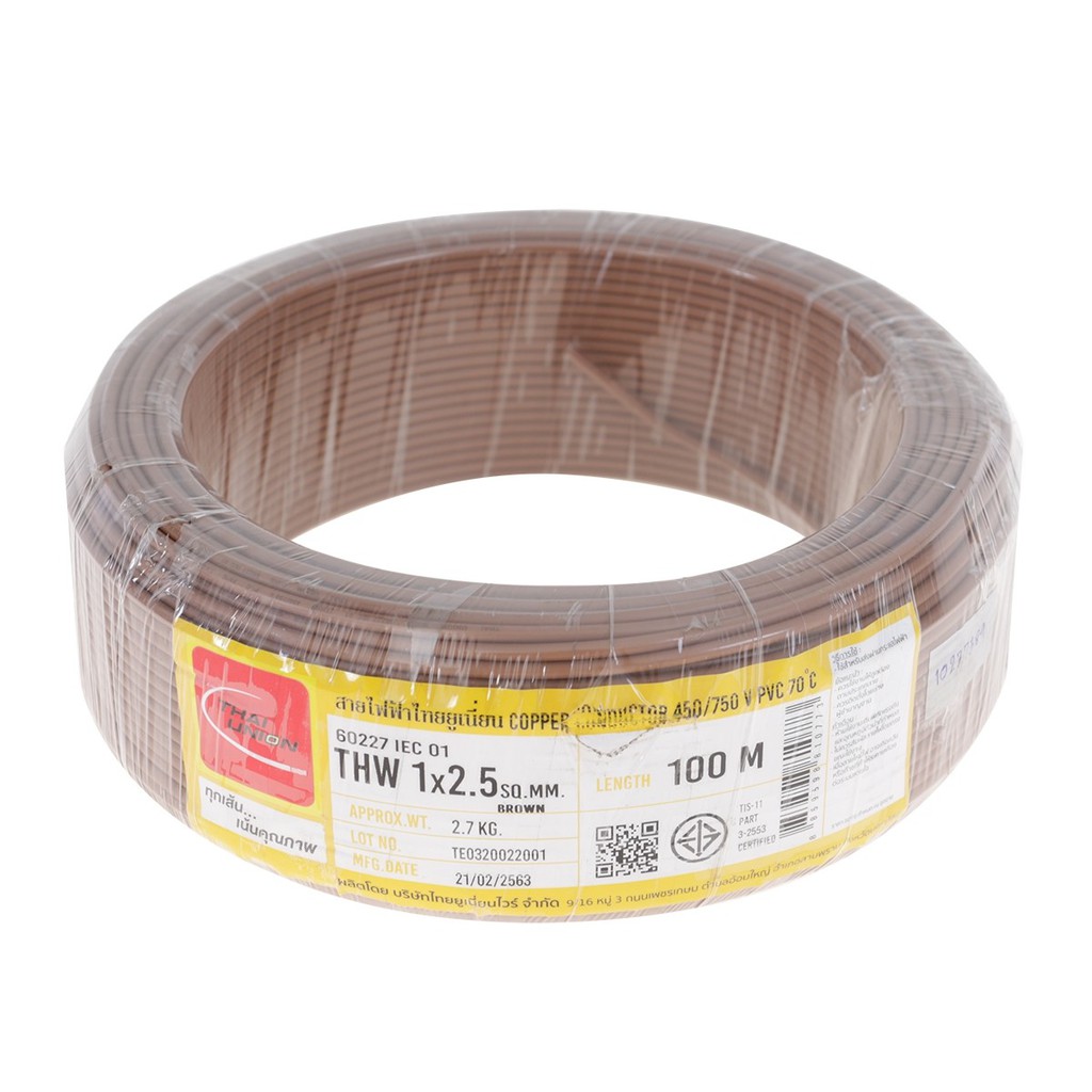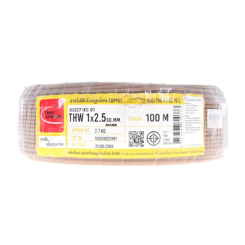 THAIUNION สายไฟ IEC01 (THW) 1x2.5 Sqmm. ยาว 100 เมตร สีน้ำตาล |ROL|