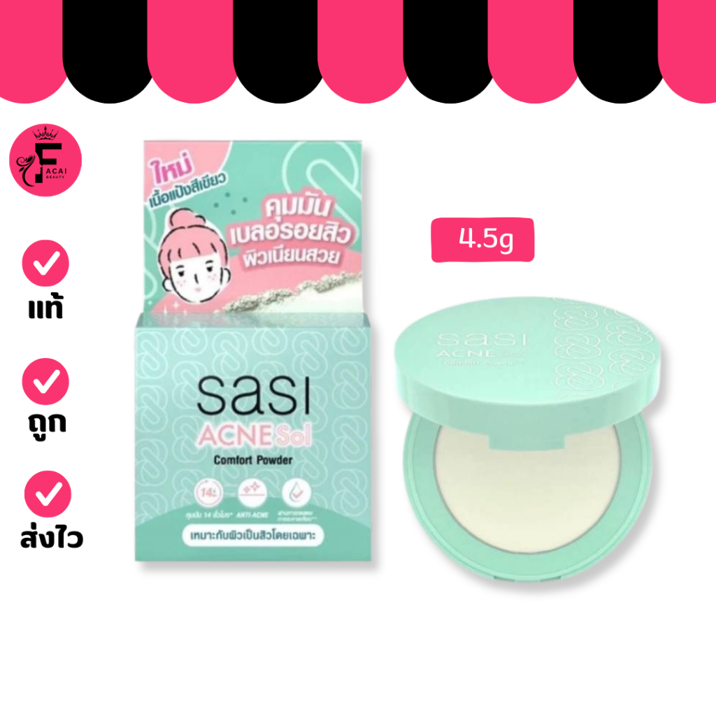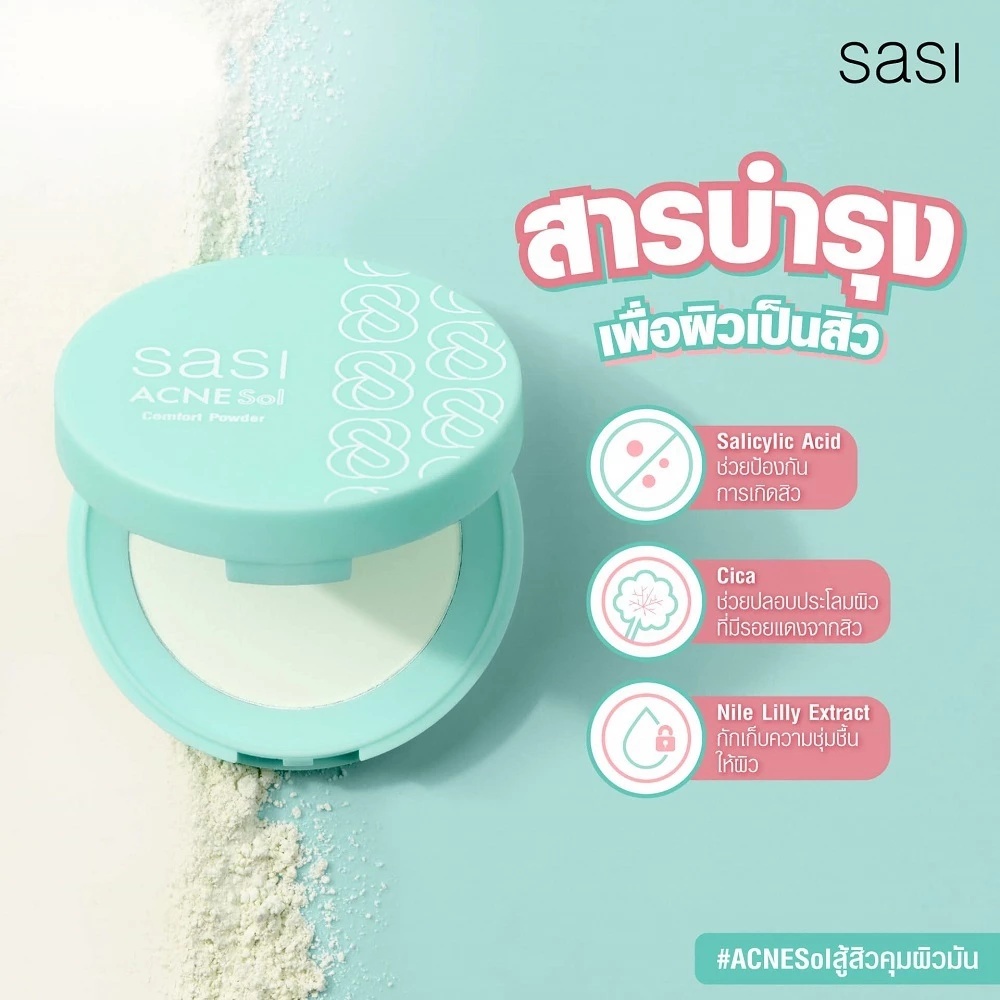 (1 ตลับ) sasi แป้งแอคเน่โซล (สำหรับผิวเป็นสิว) คอมฟอร์ท พาวเดอร์ Acne Sol Comfort Powder (4.5 g.)
