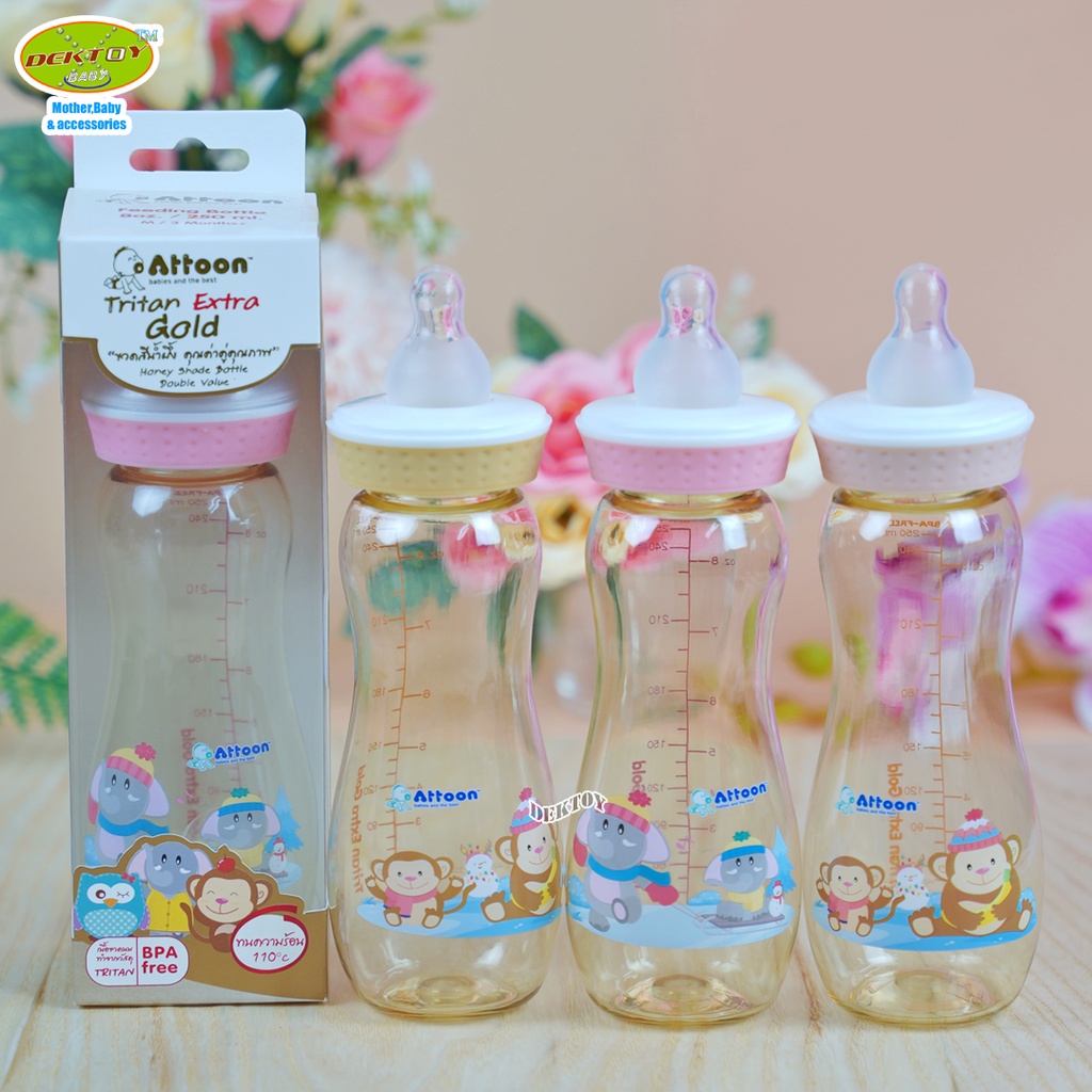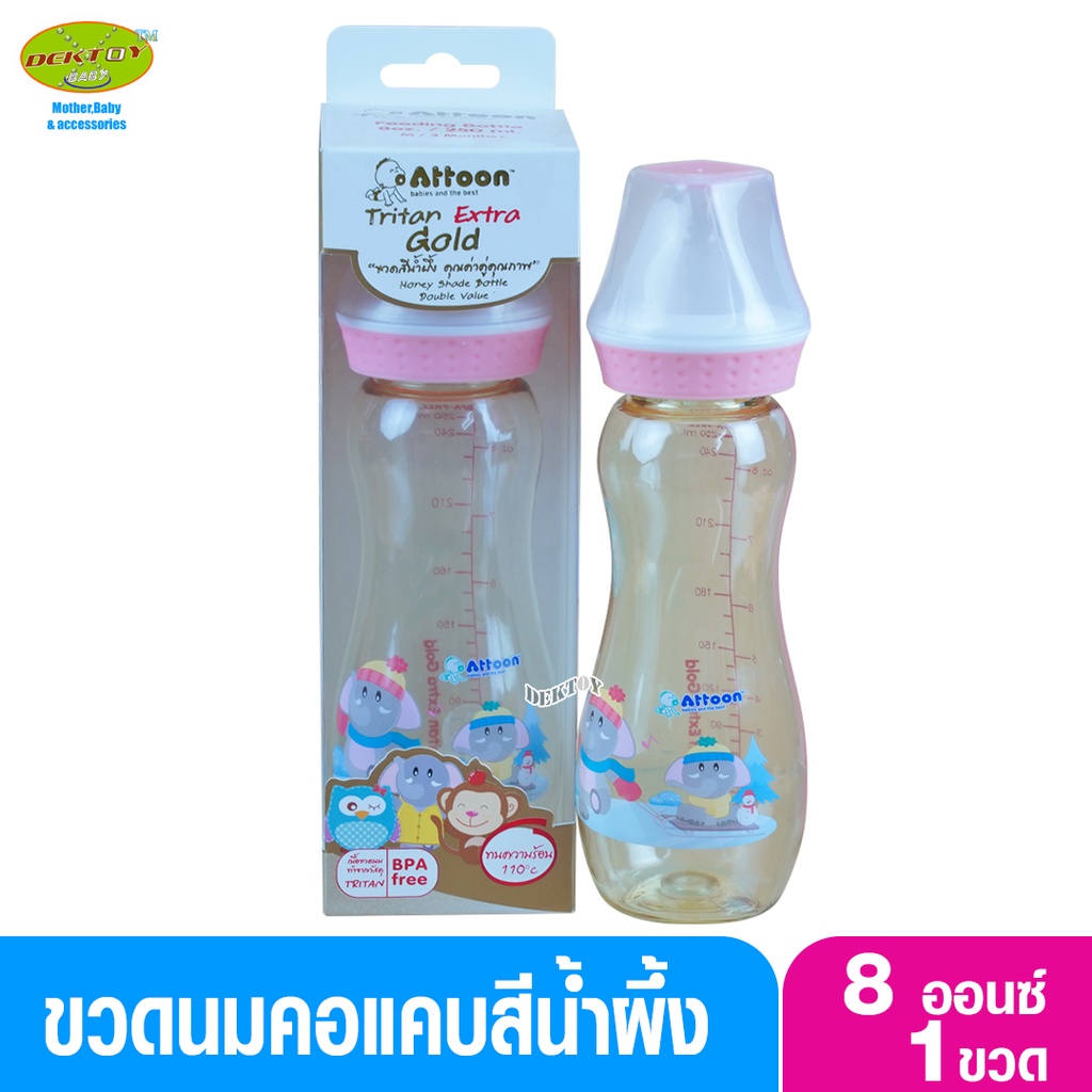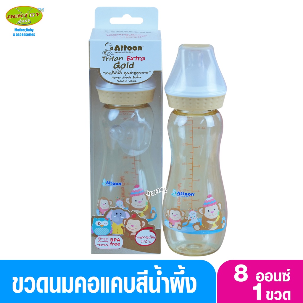 Attoon แอทตูน ขวดนมแอทตูนคอแคบสีน้ำผึ้ง Tritan Extra Gold 8 ออนซ์