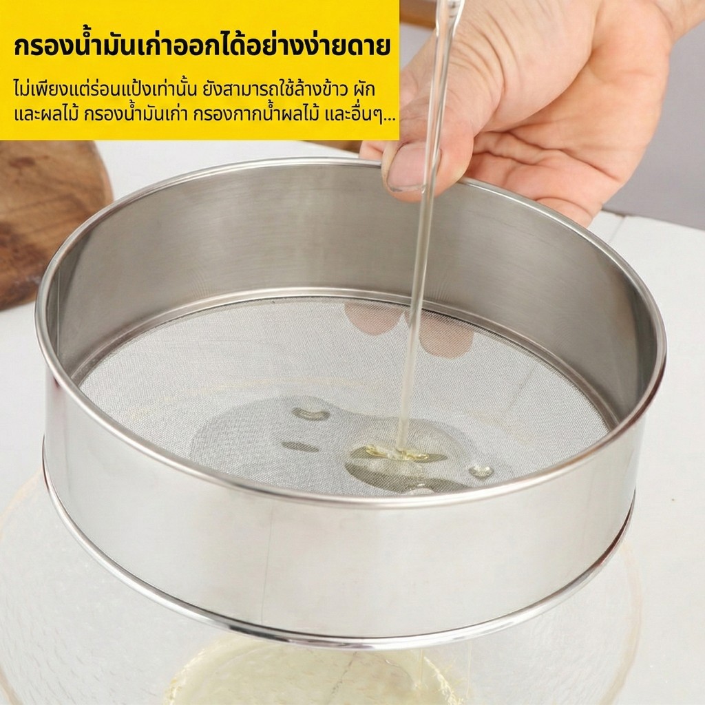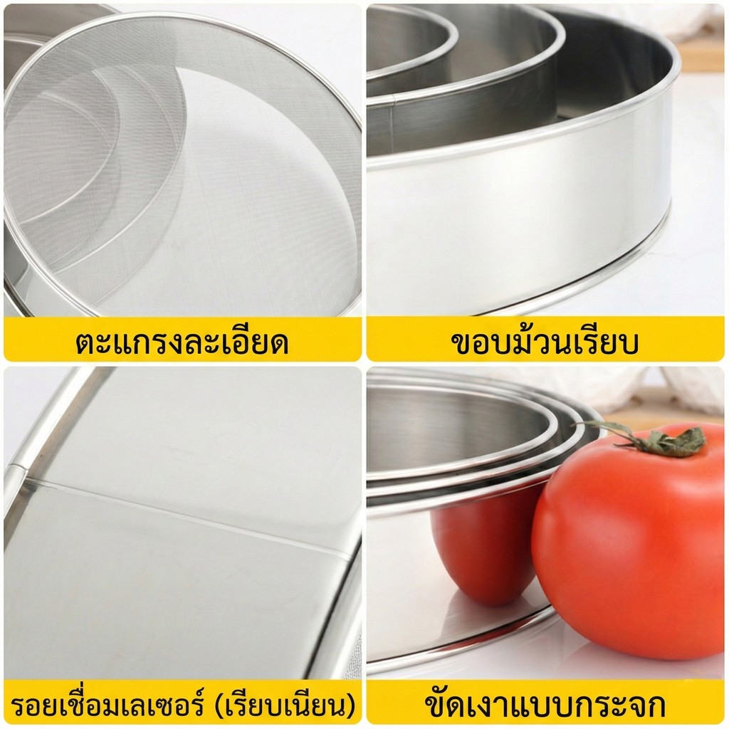 ตะแกรงร่อนแป้งเบเกอรี่ ขนาด 15-30ซม. สแตนเลส 304 แท้ ร่อนแป้งละเอียด ล้างสะดวก ไม่ขึ้นสนิม