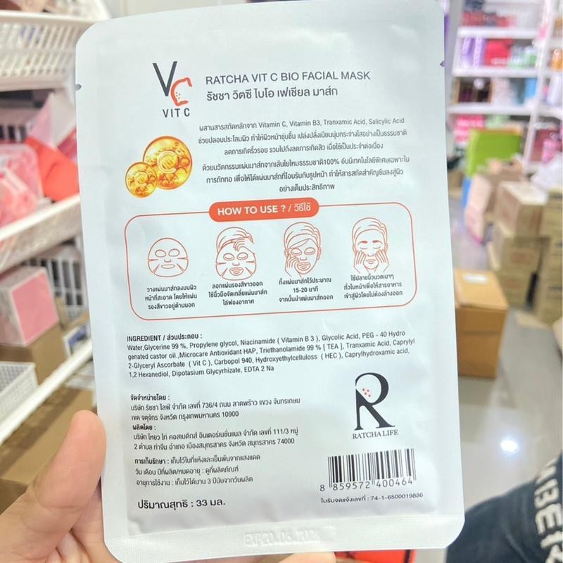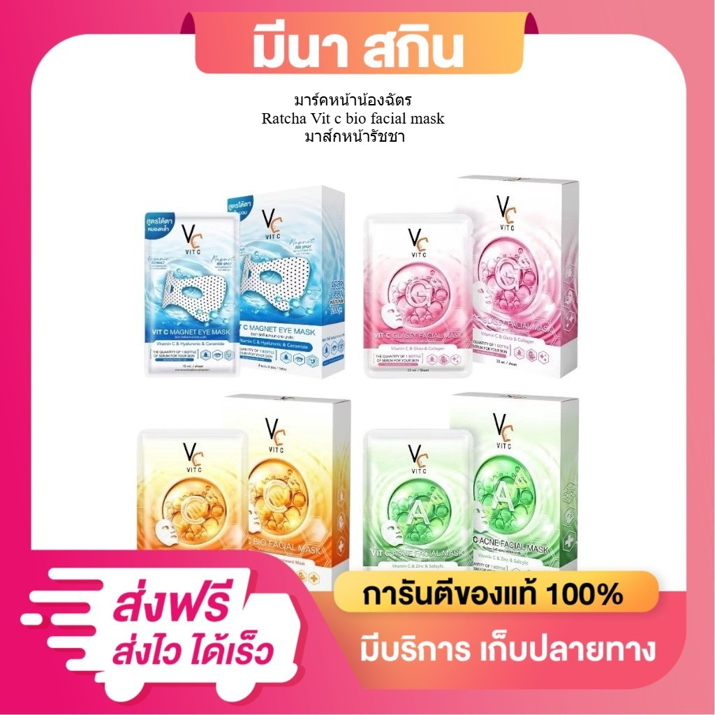 (แบบซอง) แผ่นมาส์กหน้าน้องฉัตร Ratcha รัชชา วิตซี เฟเชียล มาส์ก , อายมาส์ก 15-33 มล.