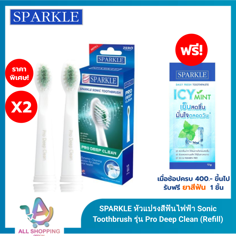 (โค้ดลด40% พิเศษLive!!) SPARKLE หัวRefill หัวแปรงสีฟันไฟฟ้า Sonic Toothbrush รุ่น Pro Deep Clean (Refill) รวม 2 ชิ้น