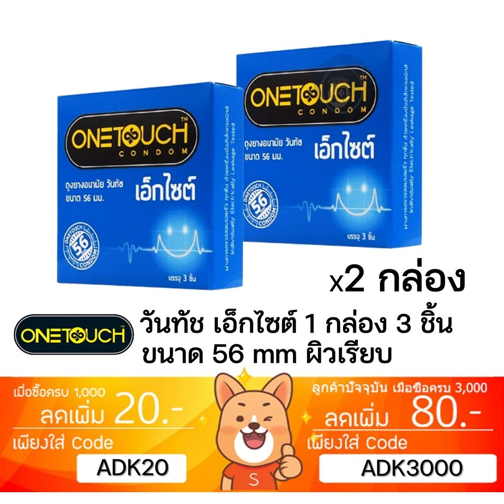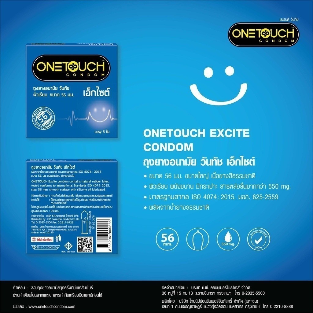 ลดเพิ่ม 30% 🔥 Onetouch excite 56 Condom ถุงยางอนามัย วันทัช เอ็กไซต์ ผิวเรียบ ขนาด 56 มม จำนวน 2กล่อง บรรจุ 3ชิ้น/กล่อง