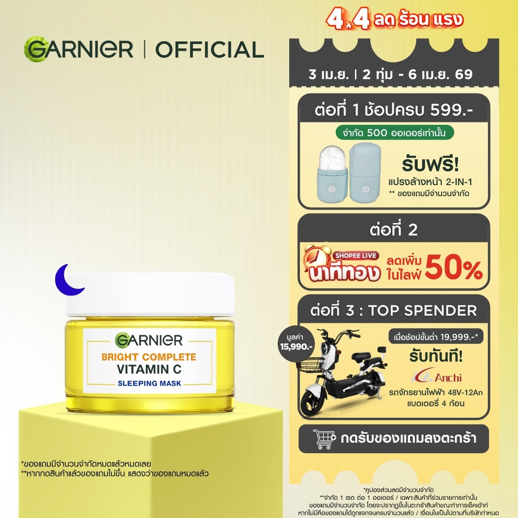 การ์นิเย่ ไบรท์คอมพลีท สลีปปิ้งมาส์ก 50 มล. Garnier Bright Complete ไนท์ครีม ครีมหน้าใส ครีมบำรุงผิว ครีมบำรุงหน้า
