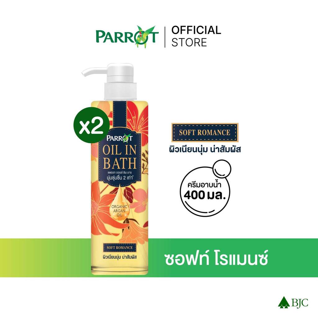 แพรอทครีมอาบน้ำ ออยล์อินบาธ ซอฟท์ โรแมนซ์ 400มล. สีครีม [Bundle 2]Parrot Oil In Bath Soft Romance 400ML สบู่เหลว