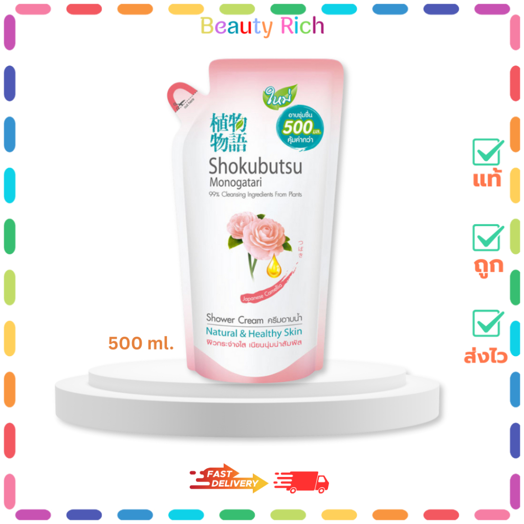 (1 ถุง) Shokubutsu Monogatari Japanese Camellie (กุหลาบ) ครีมอาบน้ำ โชกุบุสซึ (500 ml.)