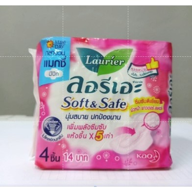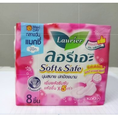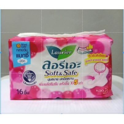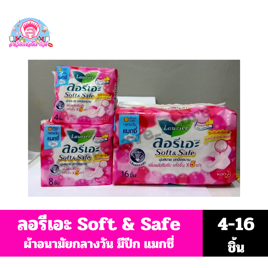 ลอรีเอะ Soft & Safe แมกซี่ มีปีก ผ้าอนามัย 22 ซม.สีชมพู **4-16 ชิ้น**