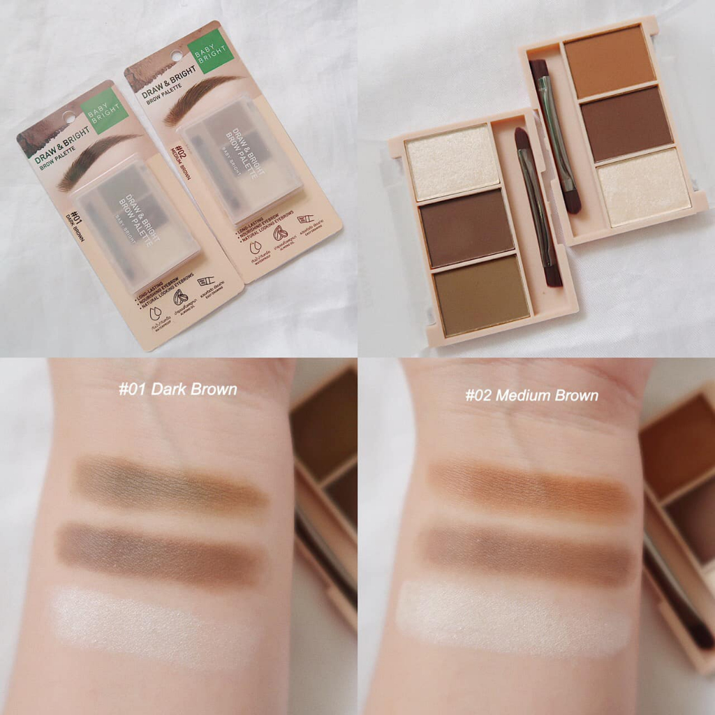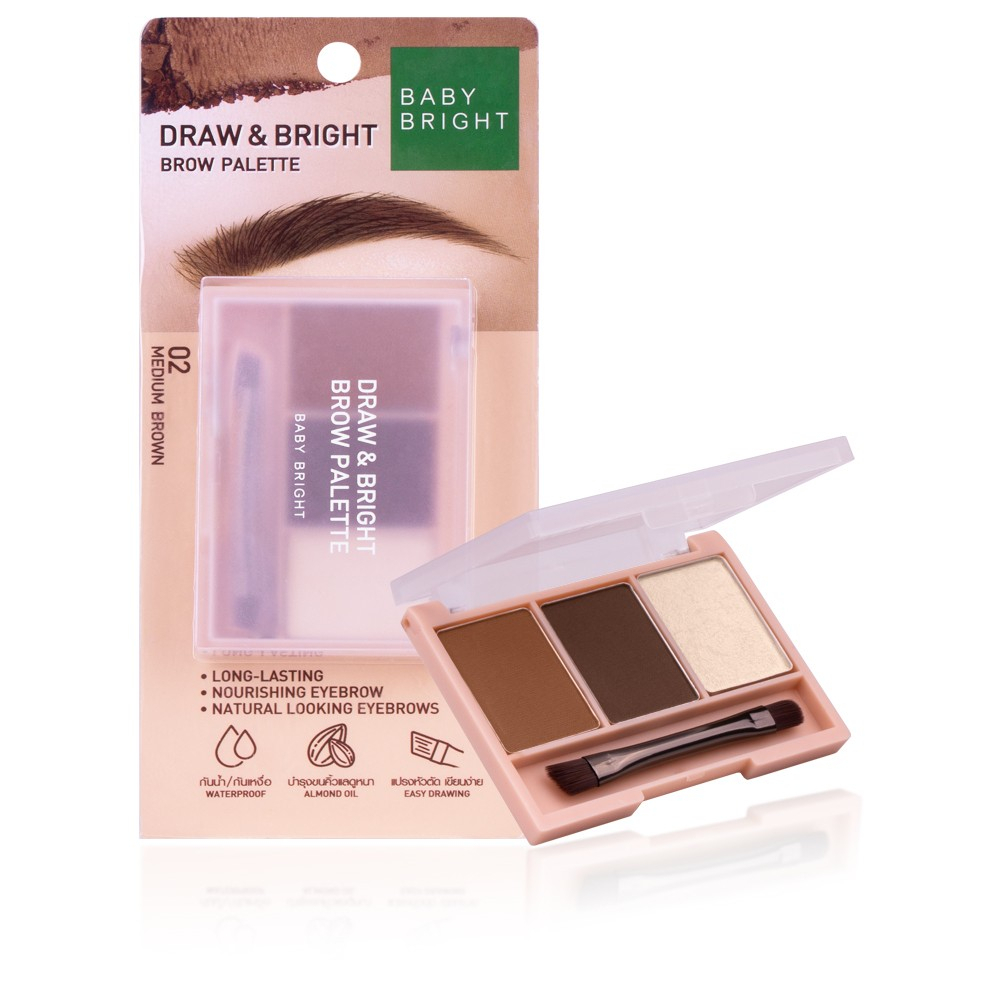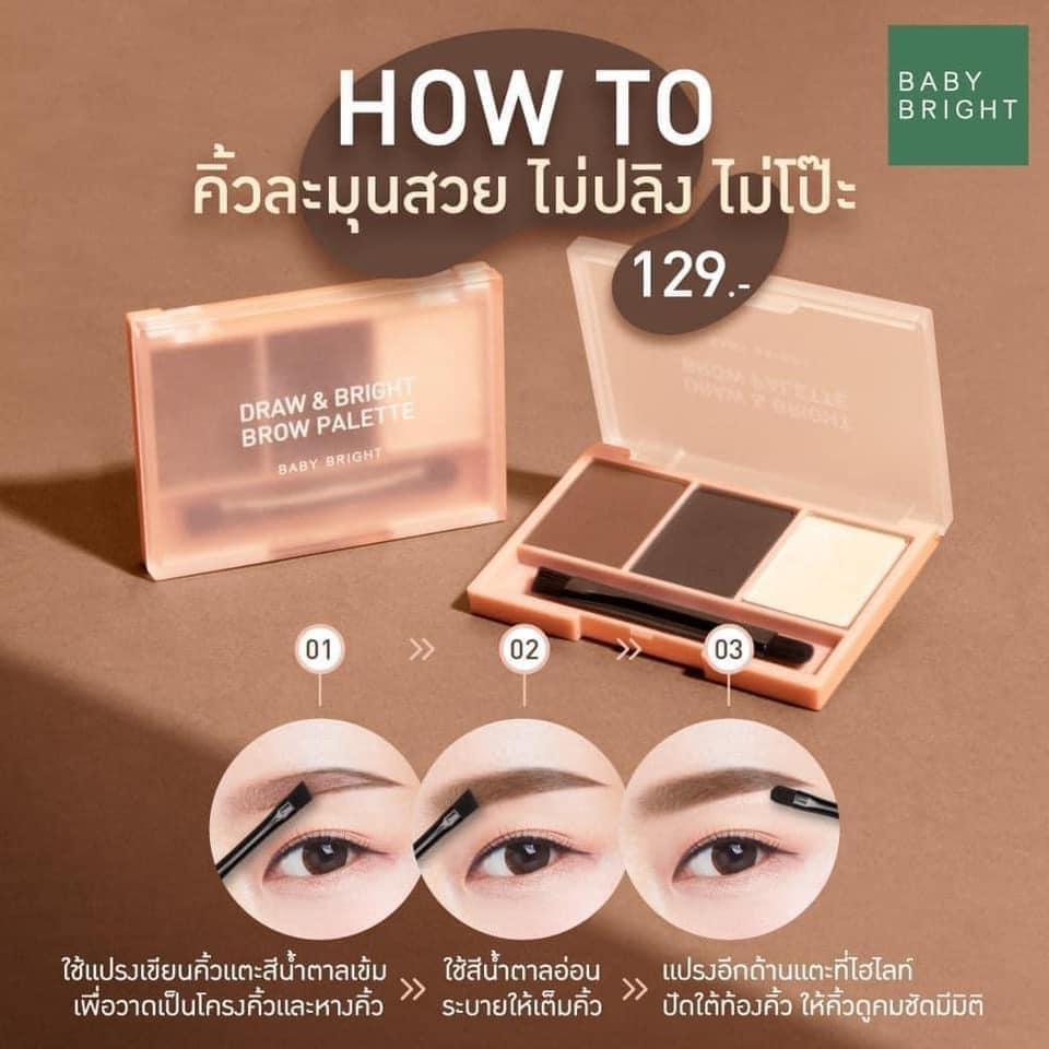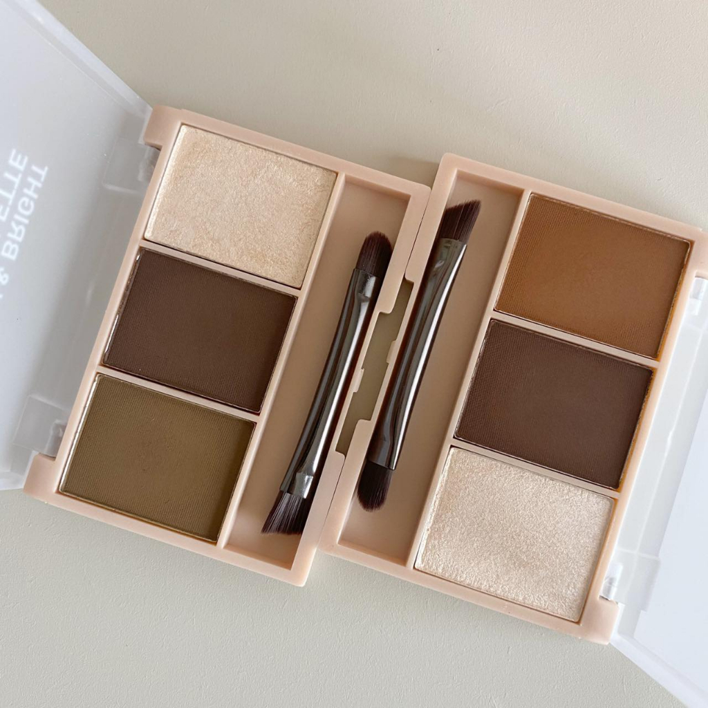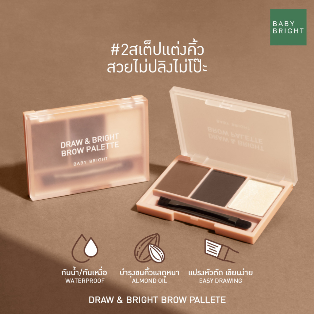 🌈ตลับเขียนคิ้ว⚡ 3 สเต็ป คิ้วคม&ไฮไลท์คิ้ว【กันน้ำ กันเหงื่อ】DRAW & BRIGHT BROW PALETTE BABY BRIGHT