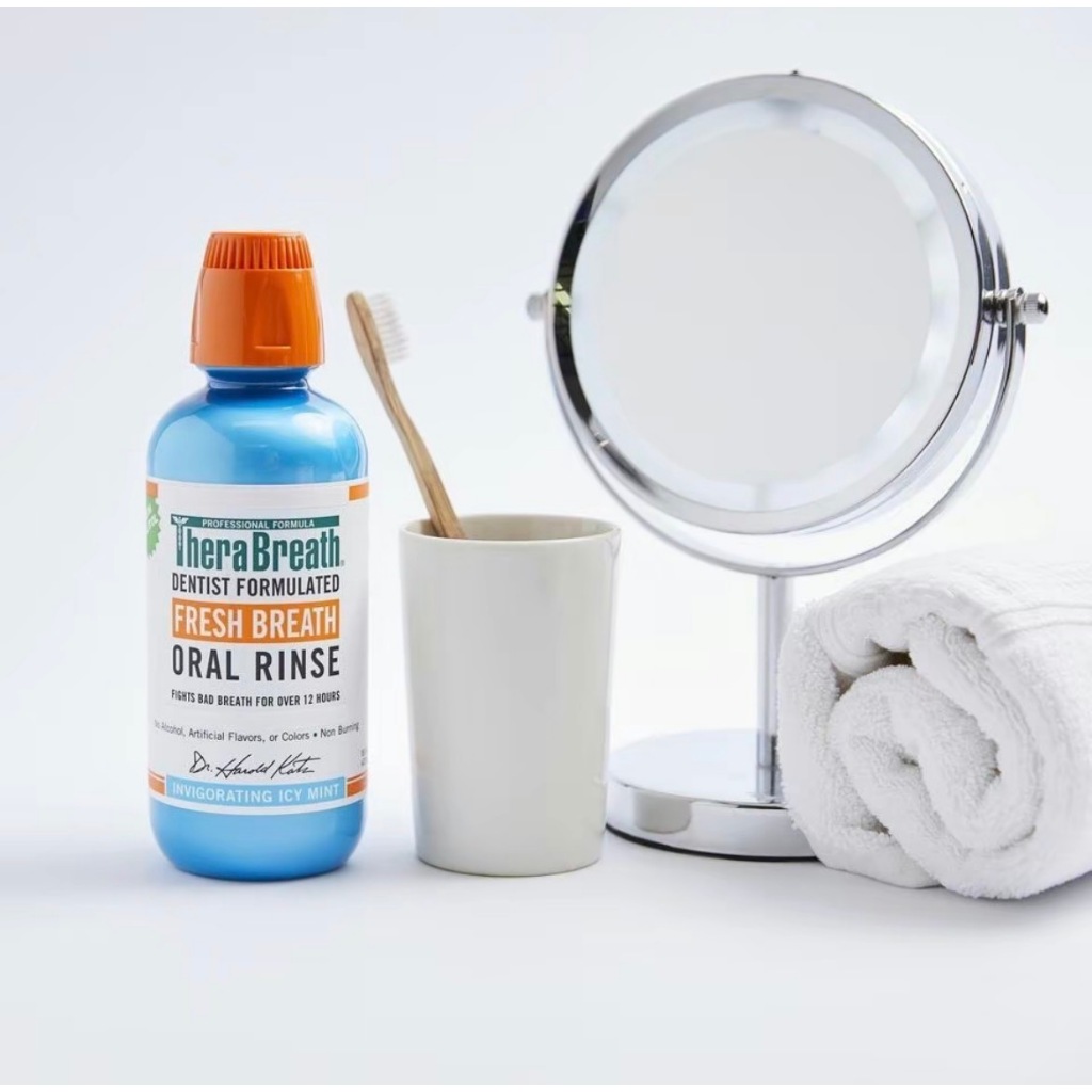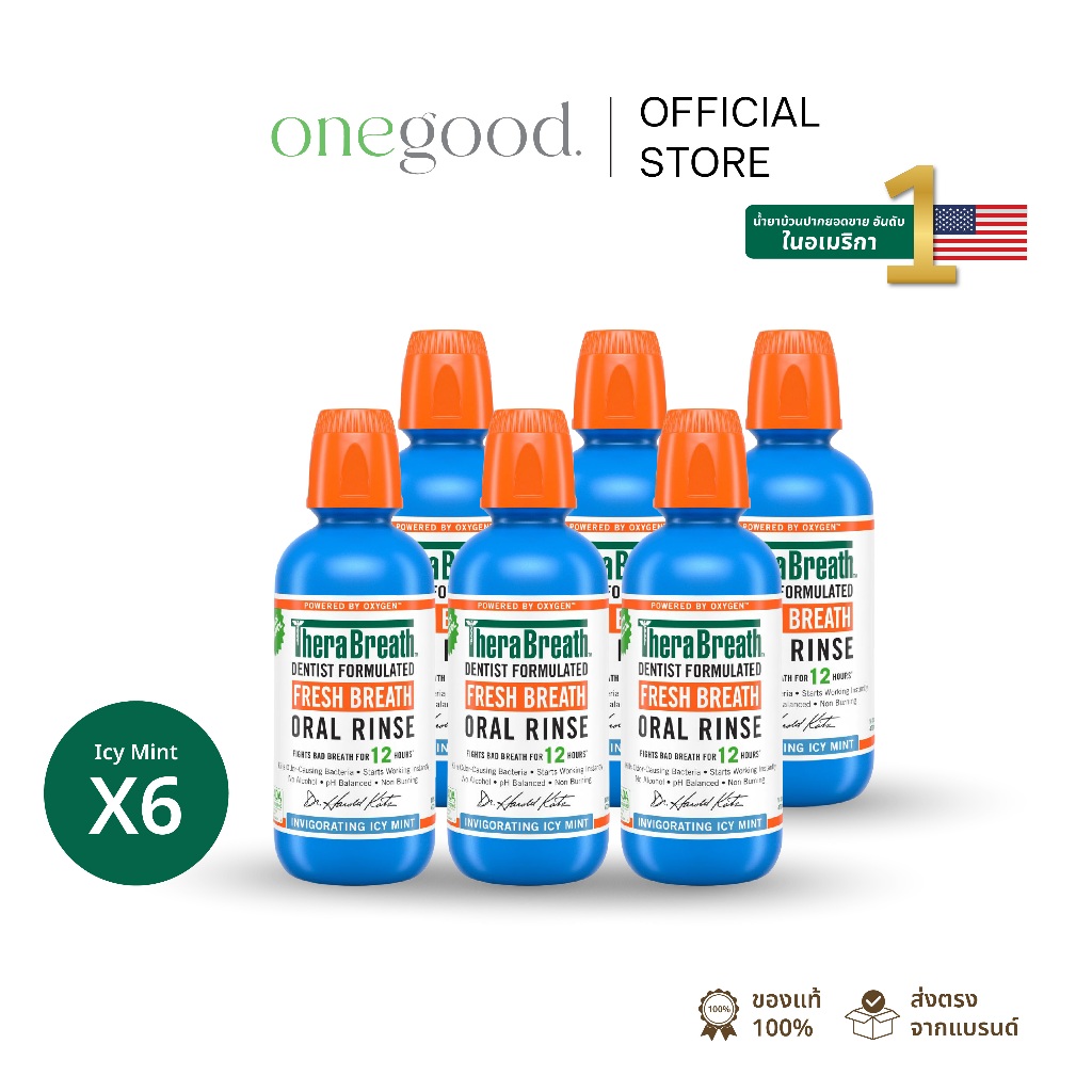 TheraBreath Fresh Breath Icy Mint [x6 สีฟ้า] | น้ำยาบ้วนปาก สูตรเย็นชื่นใจ ลดกลิ่นปาก อ่อนโยน 473 ml