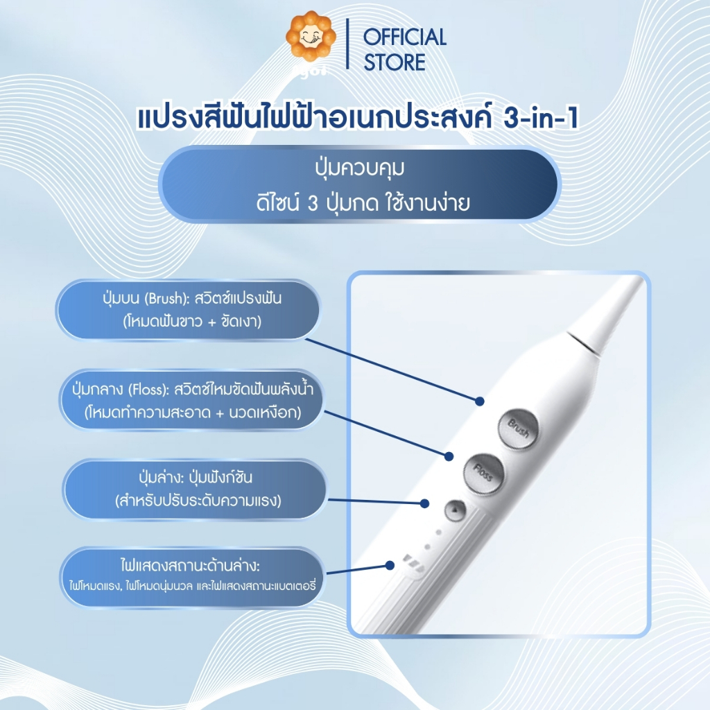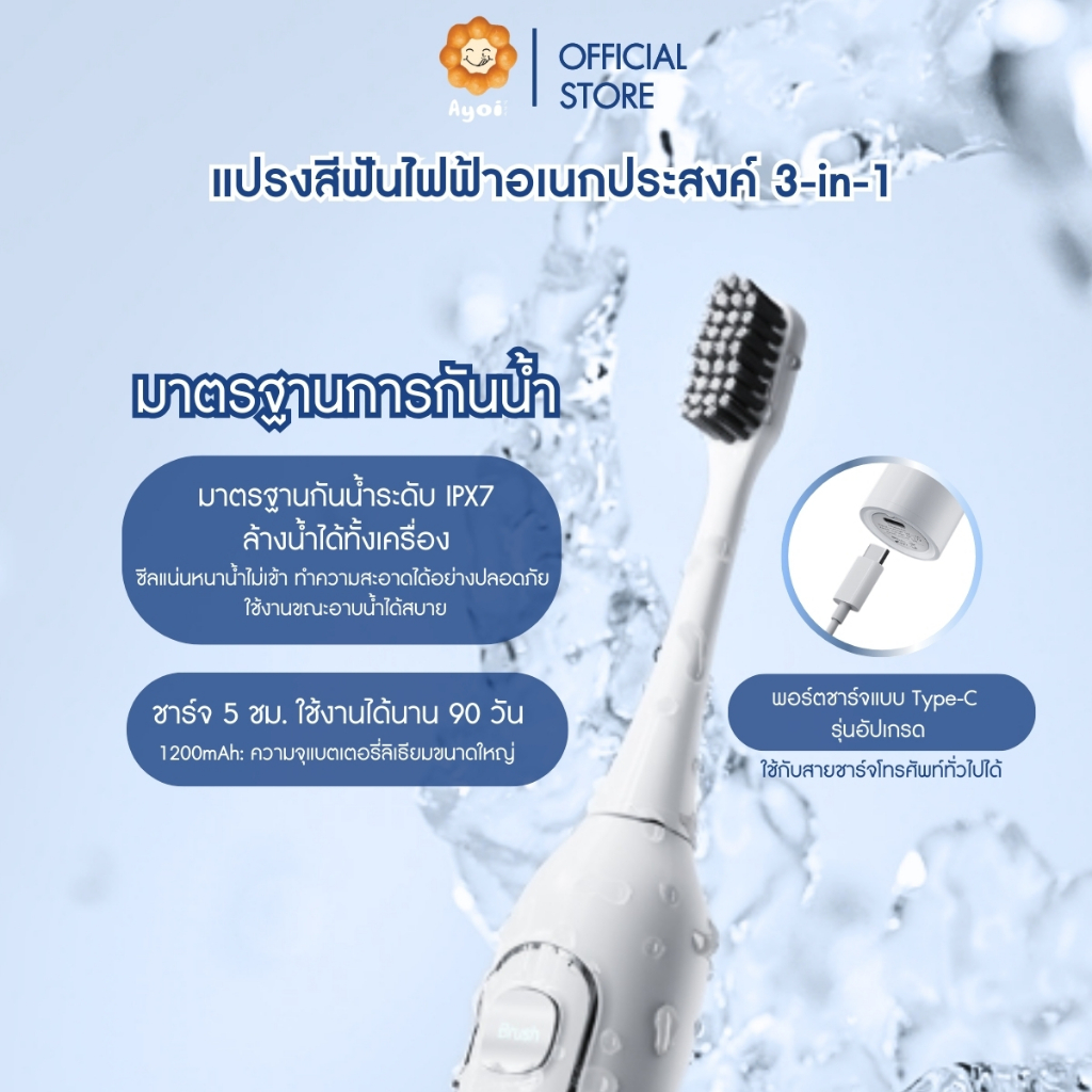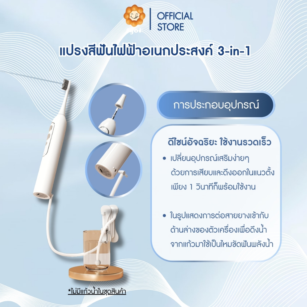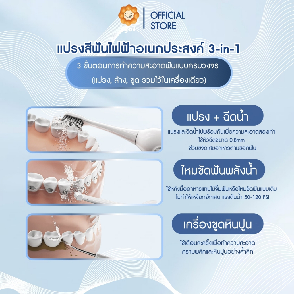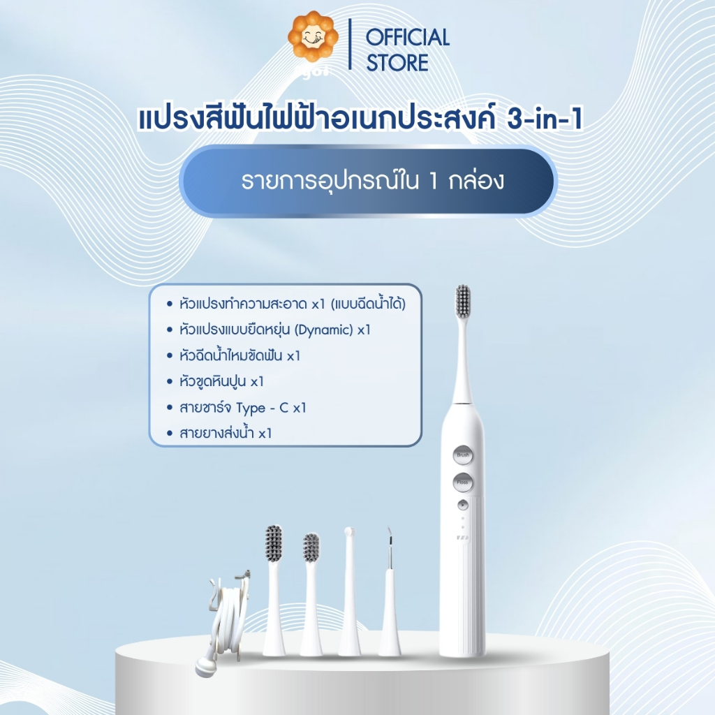 แปรงสีฟันไฟฟ้าอเนกประสงค์ 3-in-1 แปรงพร้อมฉีดน้ำ | ไหมขัดฟันพลังน้ำ | เครื่องขูดหินปูน (A19)