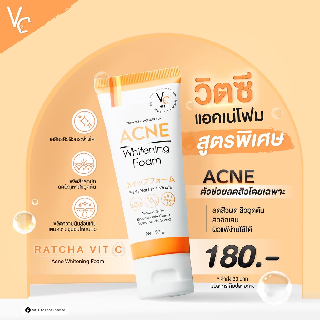 Vit C Acne Whitening Foam วิท ซี แอคเน่ ไวท์เทนนิ่ง โฟม [50 g.]