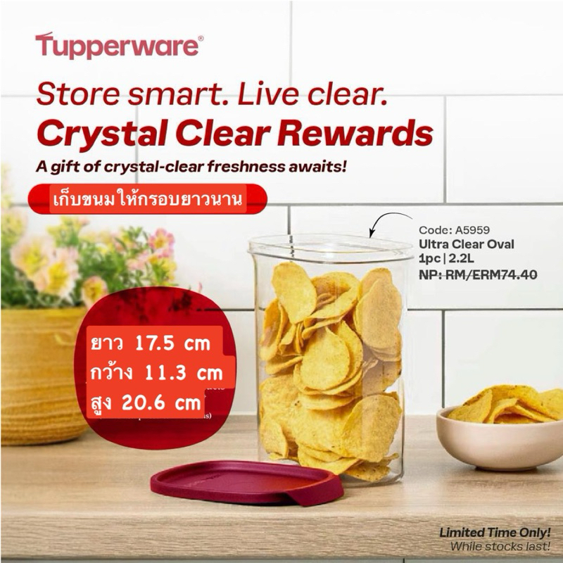 Tupperware ชุดกล่องเก็บอาหาร Ultra Clear container (1ใบ) กระปุกใส่ขนม