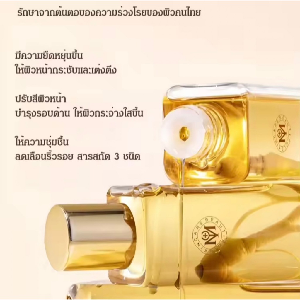 เซรั่มโสมทองคำ เซรั่มฟื้นฟูต่อต้านริ้วรอย ให้ความชุ่มชื้นอย่างอ่อนโยนและกระจ่างใส เซรั่มสกัดจากโสม เซรั่มลดเลือนริ้วรอย
