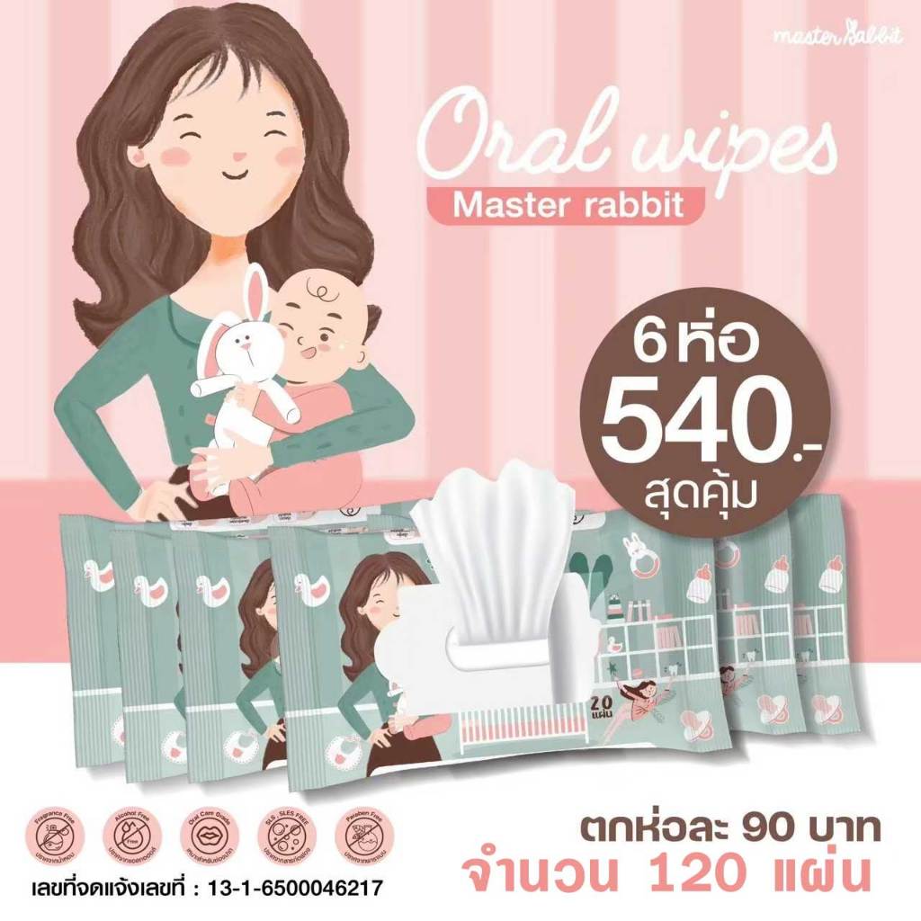 ทิชชู่ Oral Wipes เช็ดทำความสะอาดช่องปากสำหรับเด็ก เช็ดลิ้น เหงือก ฟัน กระพุ้งแก้ม โปร 6 ห่อ