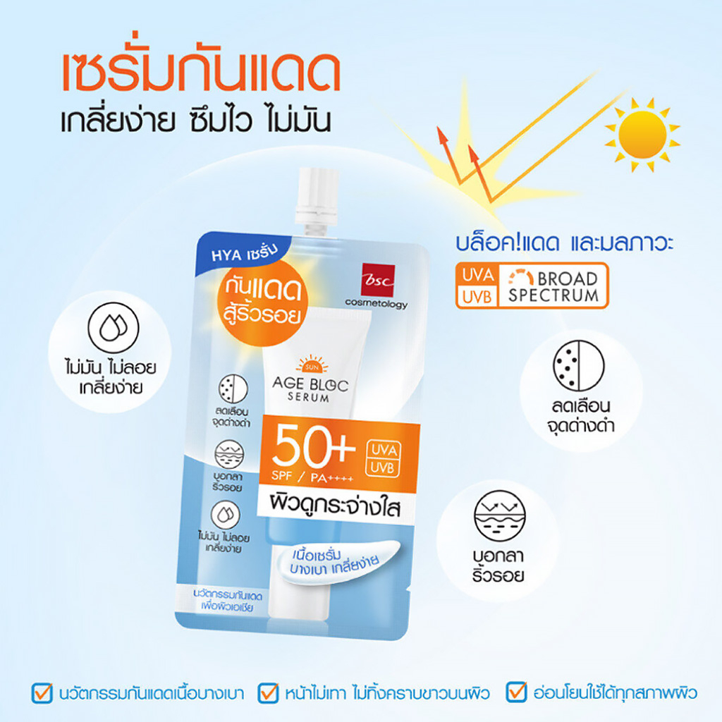 เซรั่มกันแดด บีเอสซี ซัน เอจ บล็อค เซรั่ม BSC SUN AGE BLOC SERUM SPF50+ PA++++ 7g.