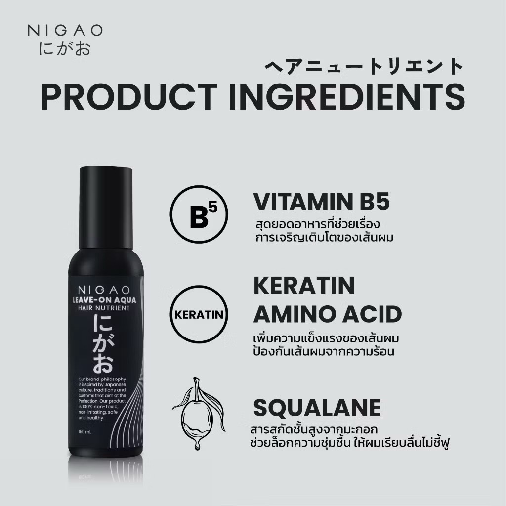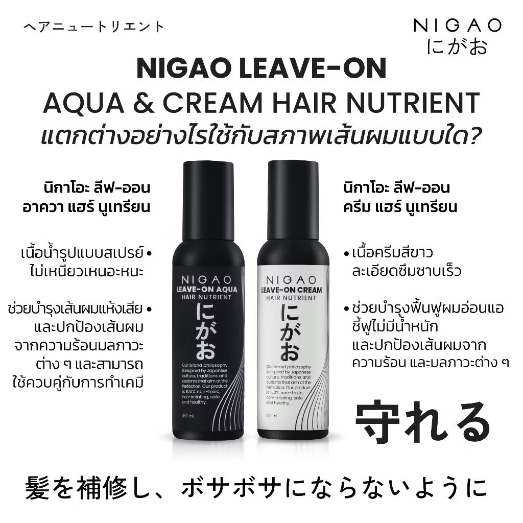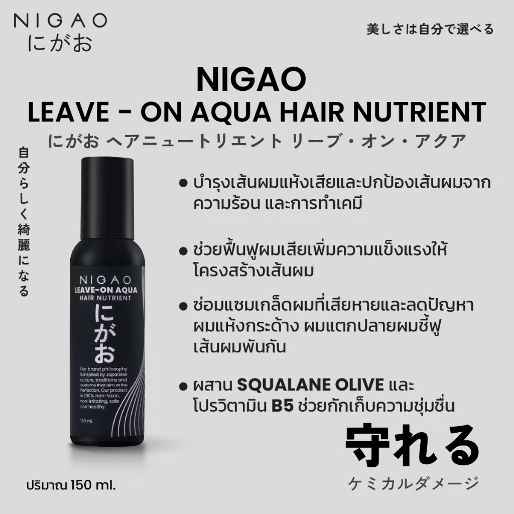 [ถูก&แท้] นิกาโอะ ลีฟออน NIGAO Leave-On Hair Nutrient บำรุงเส้นผม กันความร้อน ผมไม่ลื่นเงา 150 ml