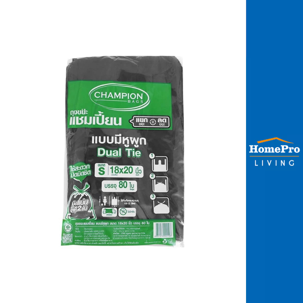 CHAMPION ถุงขยะหูผูก 18X20 นิ้ว 80 ใบ สีดำ จัดส่งโดย HomePro