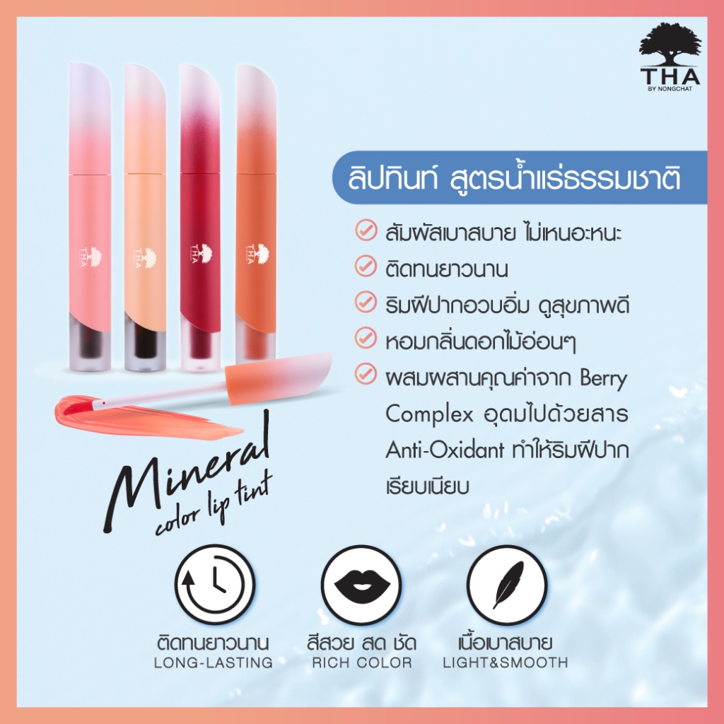 THA BY NONGCHAT มิเนอรัลคัลเลอร์ลิปทินท์ 1.9g ลิปทินท์สูตรน้ำแร่ธรรมชาติ ให้สัมผัสบางเบา เรียบเนียน ติดทน