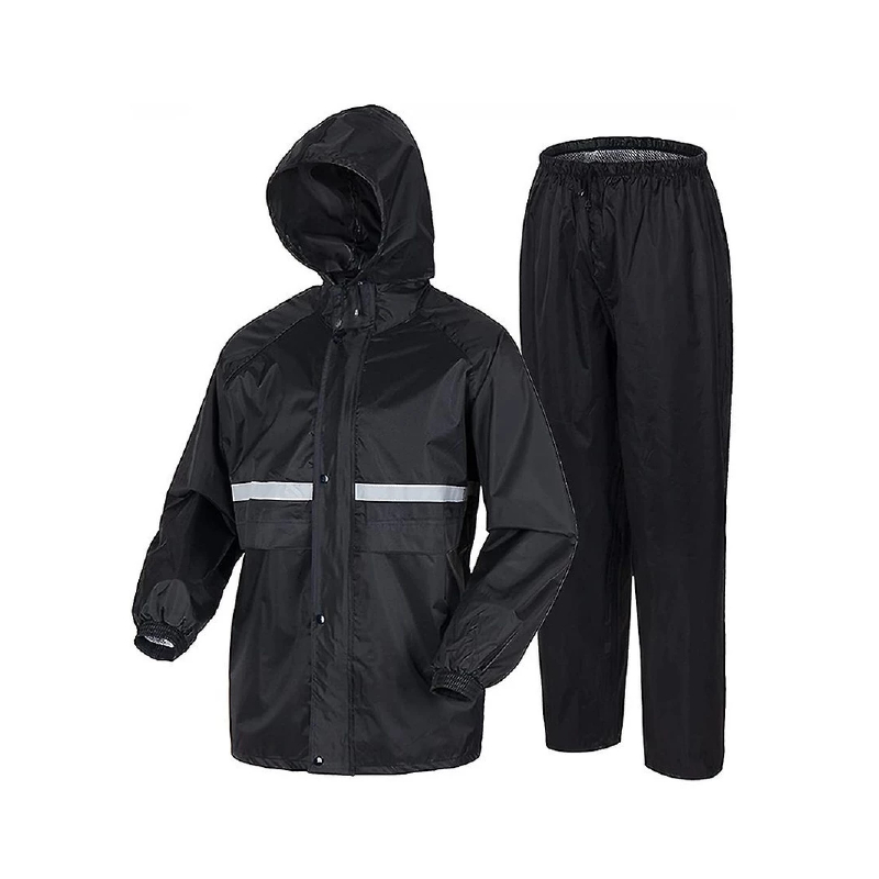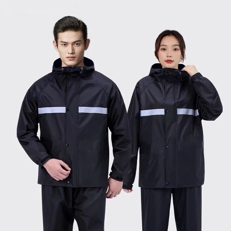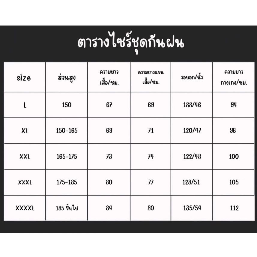เสื้อกันฝนผู้ใหญ่ ชุดกันฝนขี่มอเตอร์ไซค์ สีดำ ไซซ์ XXXXL แบบหนา มีแถบสะท้อนแสง กันฝน เสื้อกางเกงครบชุด ☔