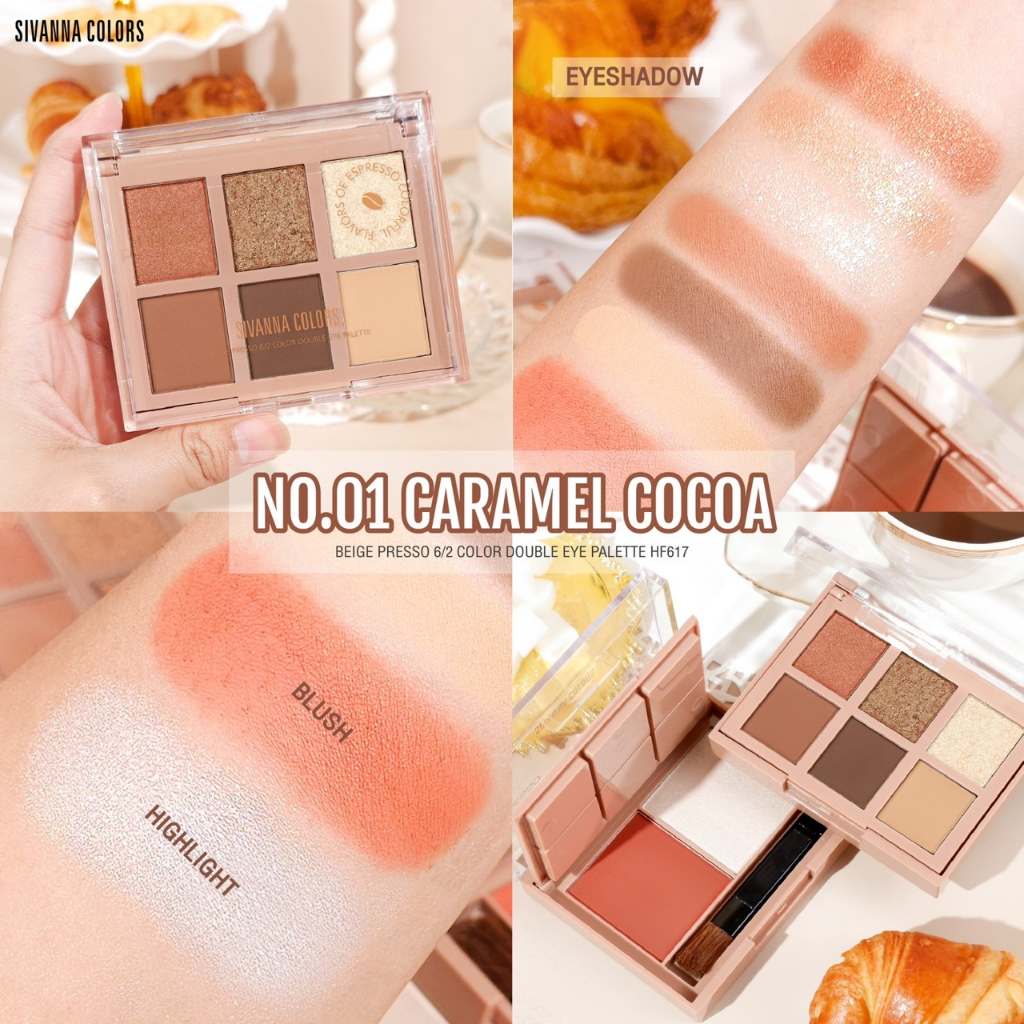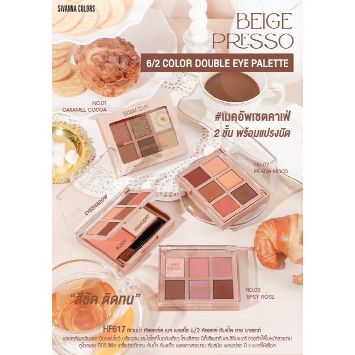 อายแชโดว์ทาตา ซีเวนน่า คัลเลอร์ส Sivanna Colors Beige Presso 6/3 Color Double Eye Palette HF617