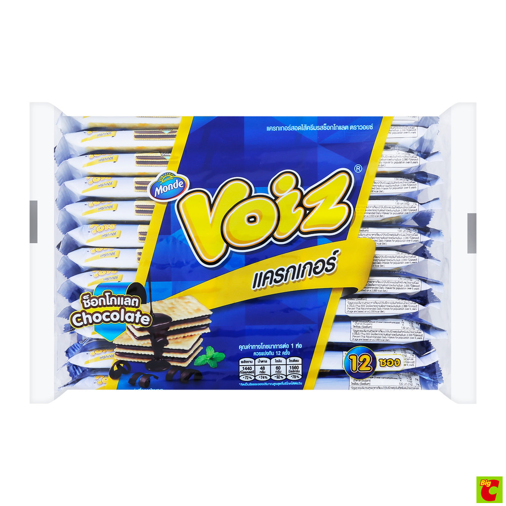วอย์ซ์ แครกเกอร์สอดไส้ครีม รสช็อกโกแลต 24 ก. แพ็ค 12
