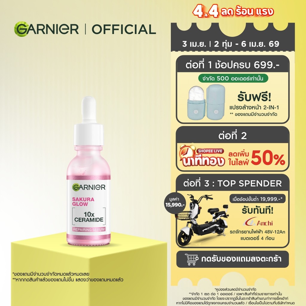 การ์นิเย่ ซากุระ โกลว์ ไฮยาลูรอน บูสเตอร์ เซรั่ม 30 มล. GARNIER SAKURA GLOW HYALURON BOOSTER SERUM 30ML เซรั่มหน้าใส เซร