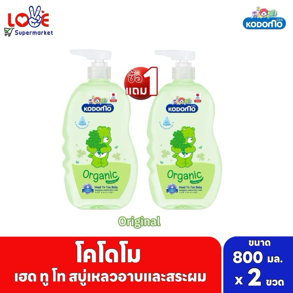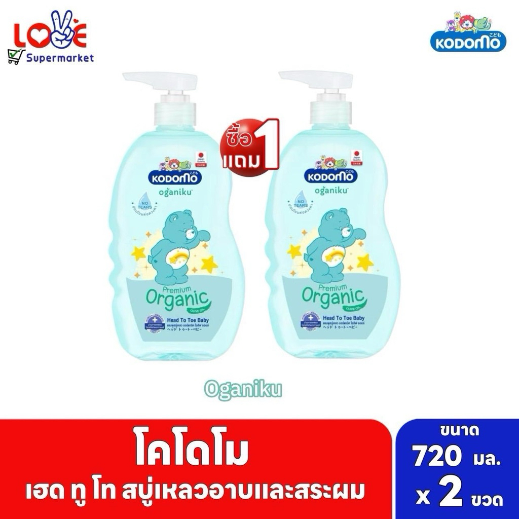 [แพ็คคู่สุดคุ้ม 1+1] Kodomo โคโดโม ออร์แกนิค เฮดทูโท บาธ สบู่เหลวอาบสระ สำหรับเด็กแรกเกิด ขวดปั๊ม 720 - 800 มล. x 2 ขวด