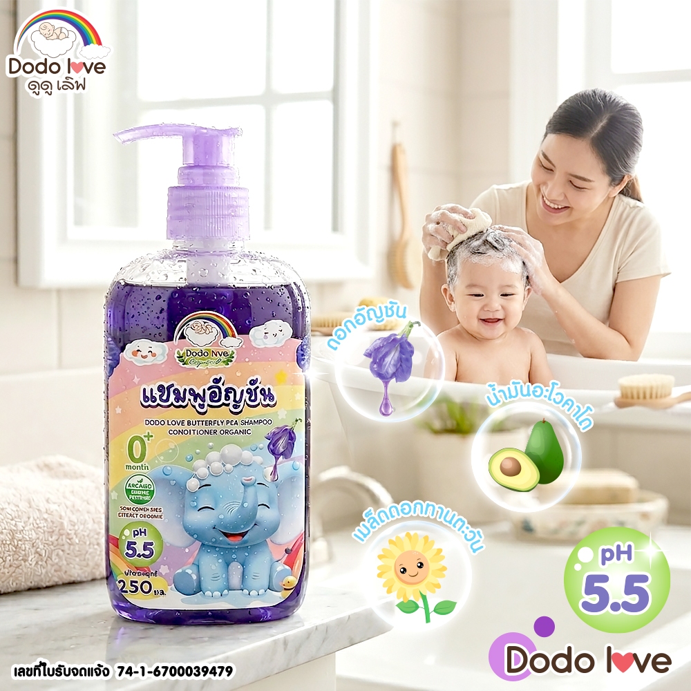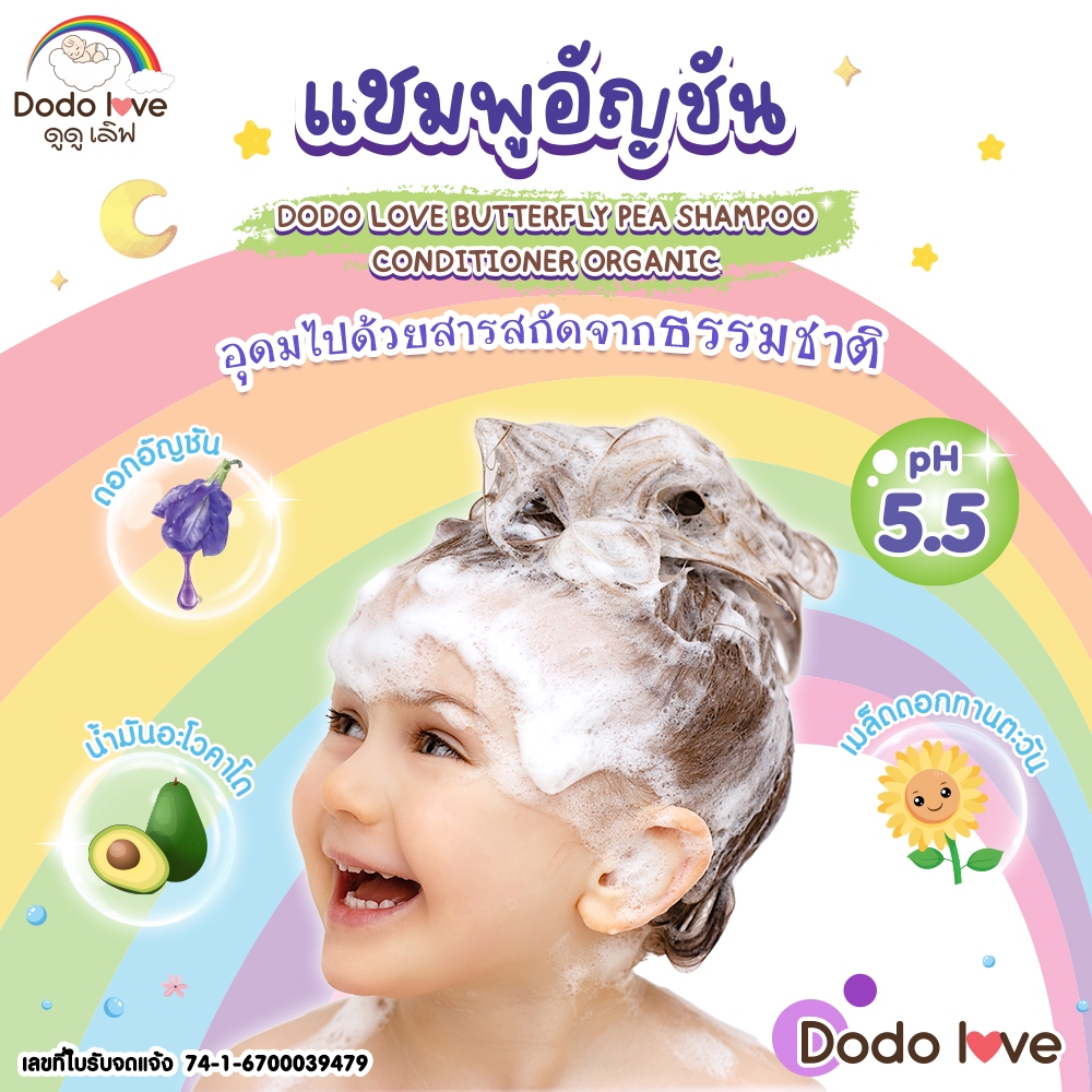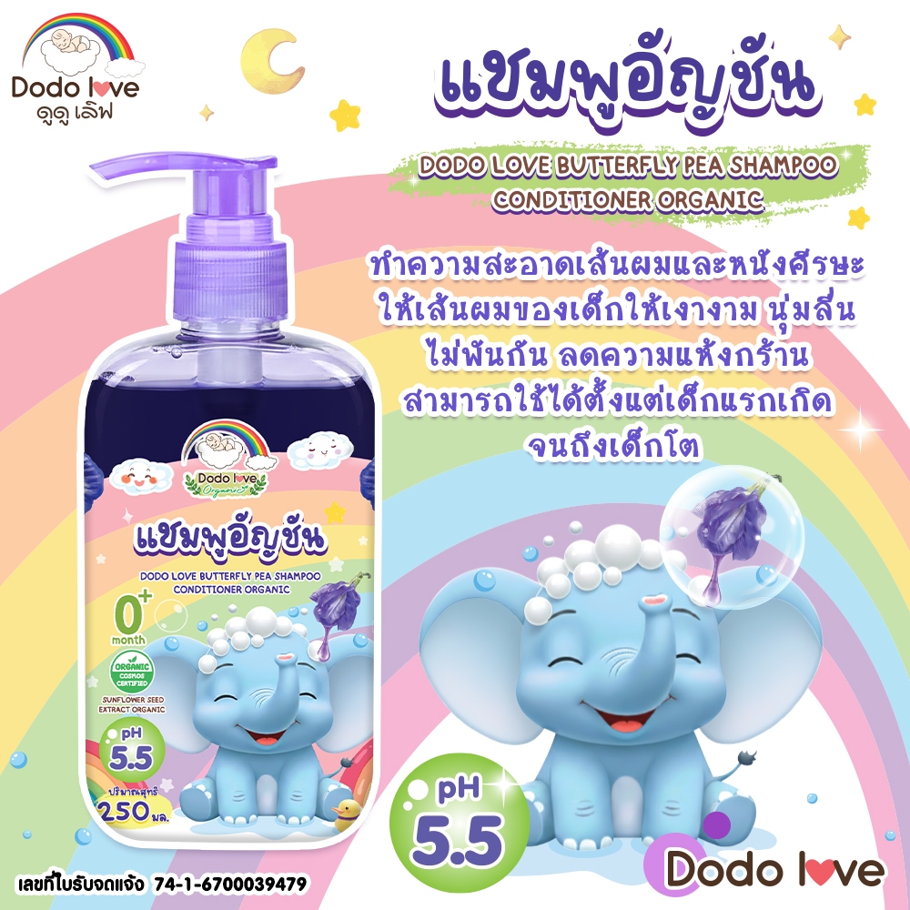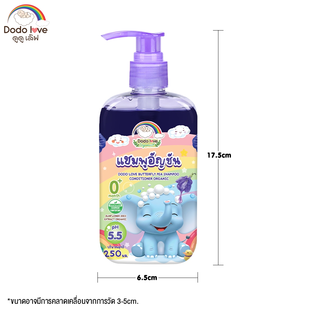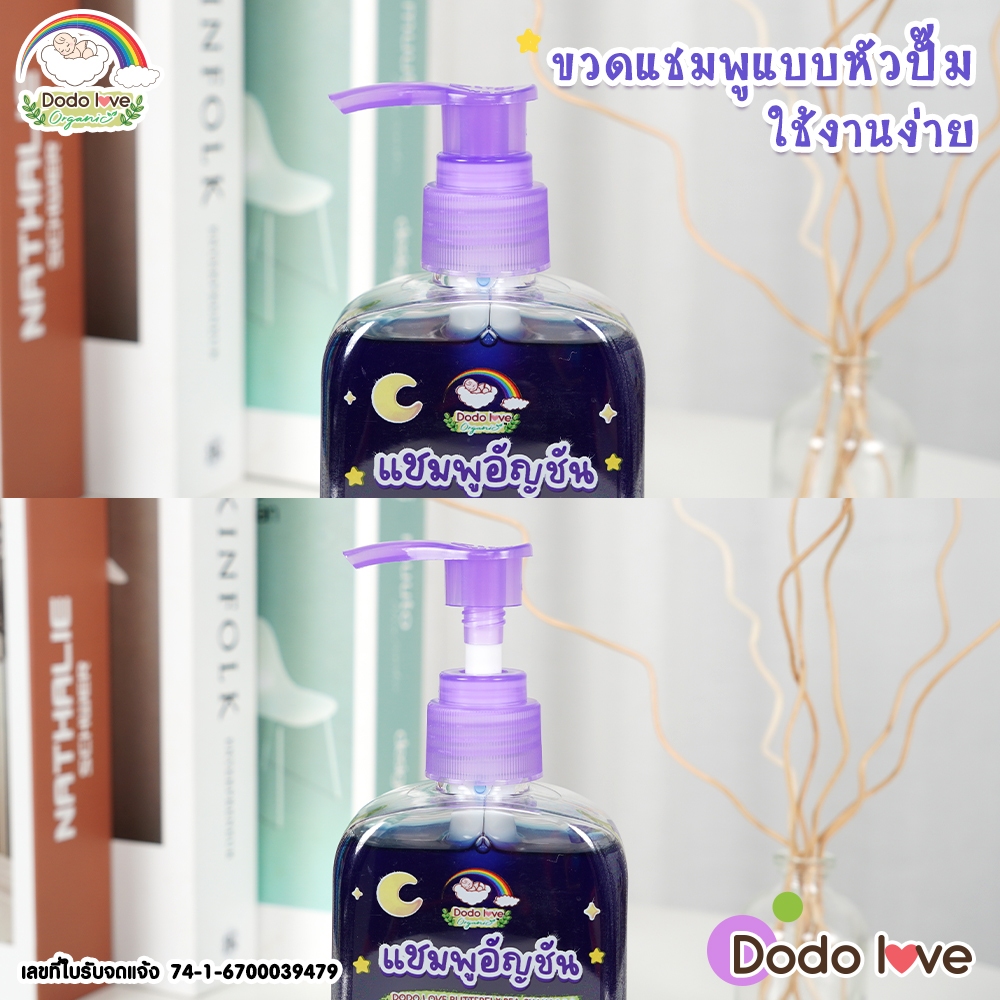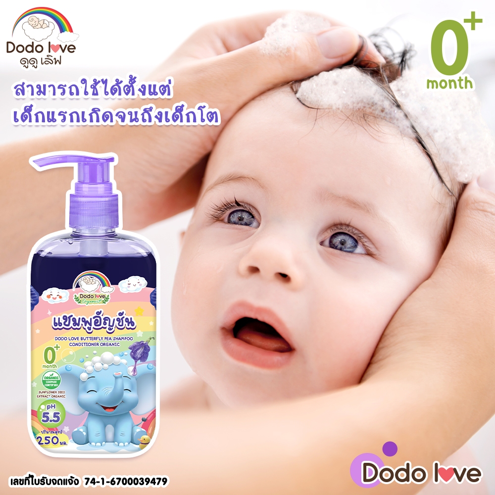 DODOLOVE Organic แชมพู แชมพูเด็กอัญชัน แ ชมพูเด็ก อ่อนโยน ใช้ได้ตั้งแต่เด็กแรกเกิด ขนาด 250ml