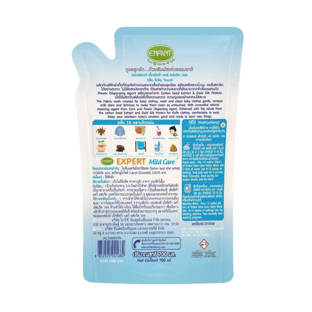 [แพ็คคู่] น้ำยาซักผ้า💜น้ำยาปรับผ้านุ่ม สำหรับเด็กอ่อน Enfant ขนาด 700 ml.