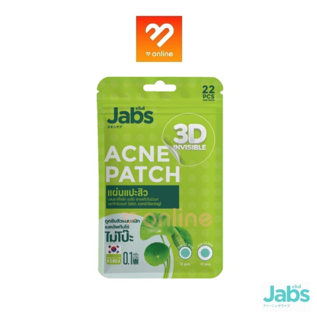 แผ่นแปะสิว Jabs 3D Invisible Acne Patch แจ๊บส์ 3D อินวิซิเบิล แอคเน่แพ็ทซ์ 22 ชิ้น