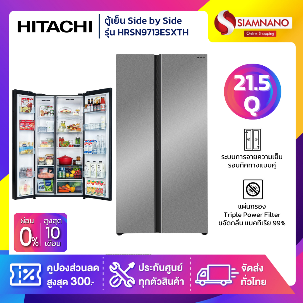 ตู้เย็น Side by Side HITACHI รุ่น HRSN9713ESXTH ขนาด 21.5 Q (รับประกันนาน 10 ปี)