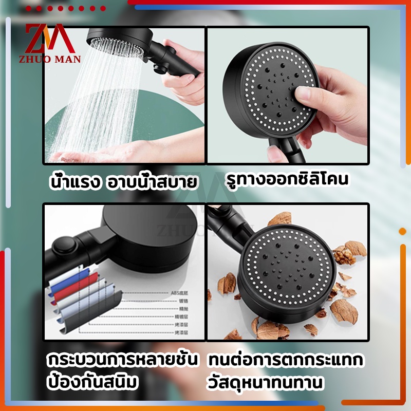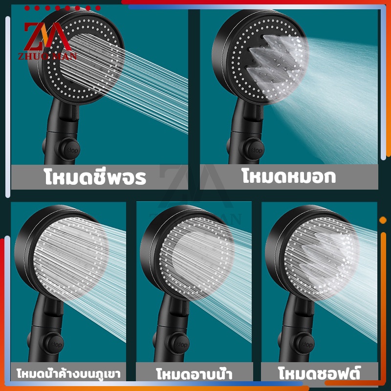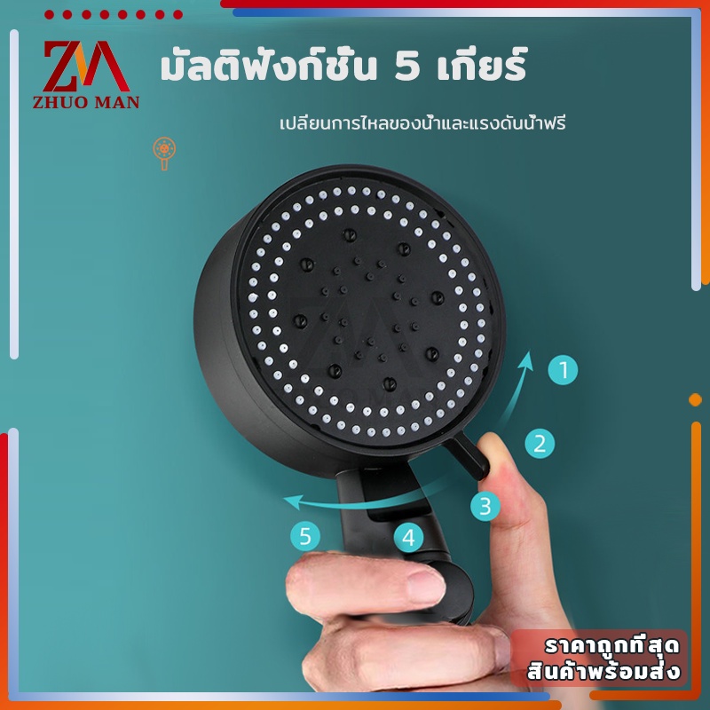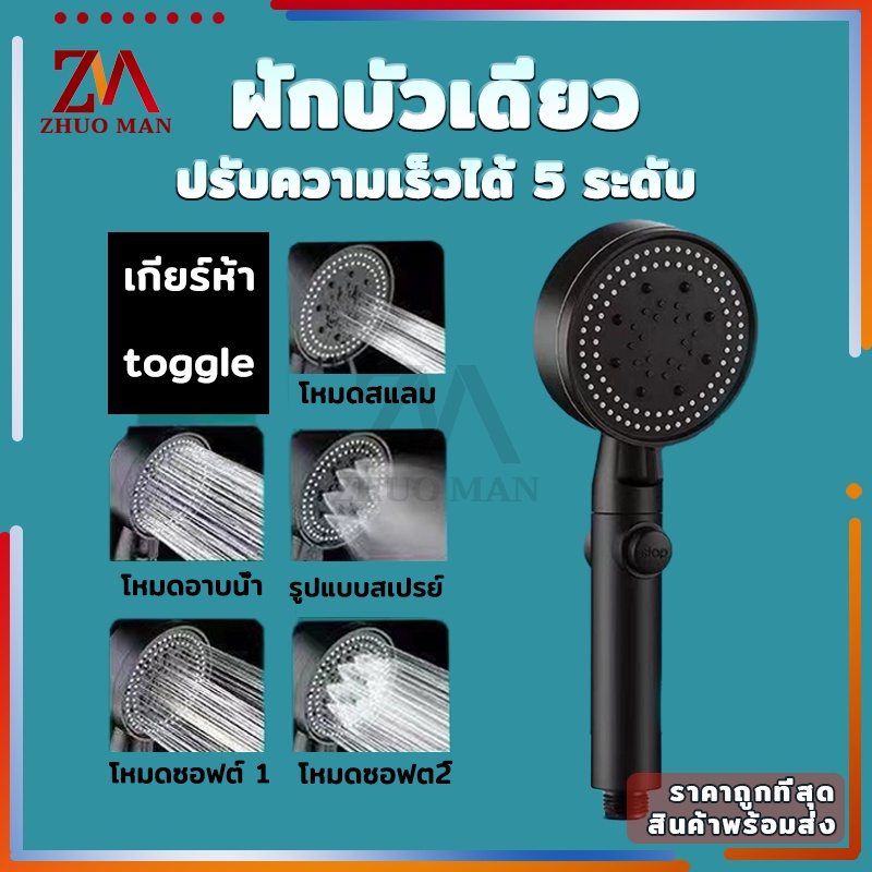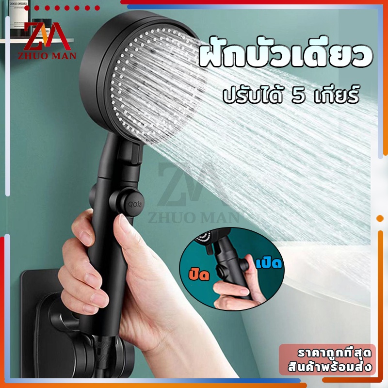 ฝักบัวอาบน้ำ ฝักบัวแรงดันน้ำสูง ฝักบัว ปรับความเร็วได้ 5 ระดับ หัวฉีดแรงดันหยุดน้ำปุ่มเดียว วัสดุ ABS คุณภาพสูง กันตก