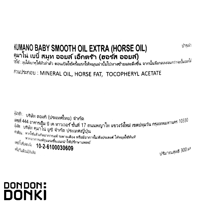คุมาโน่ เบบี้ สมูท ออยล์ เอ็กตร้า (ฮอร์ส ออยล์) KUMANO BABY SMOOTH OIL EXTRA (HORSE OIL) 300 ml.