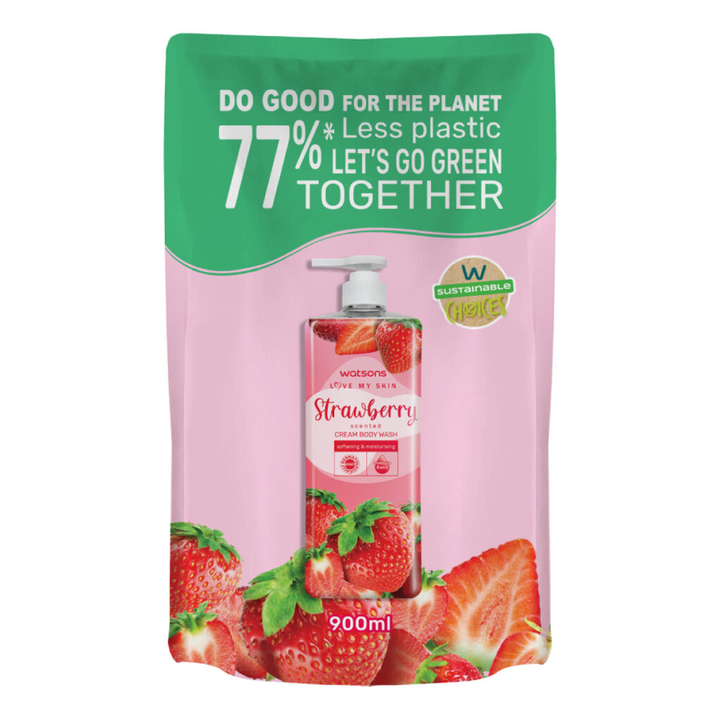 Watsons วัตสัน เลิฟ มาย สกิน สตรอว์เบอร์รี่ เซ็นทิด ครีม บอดี้ วอช 900มล.(รีฟิล)