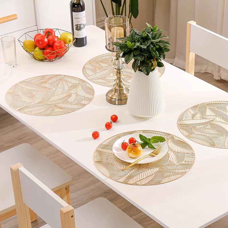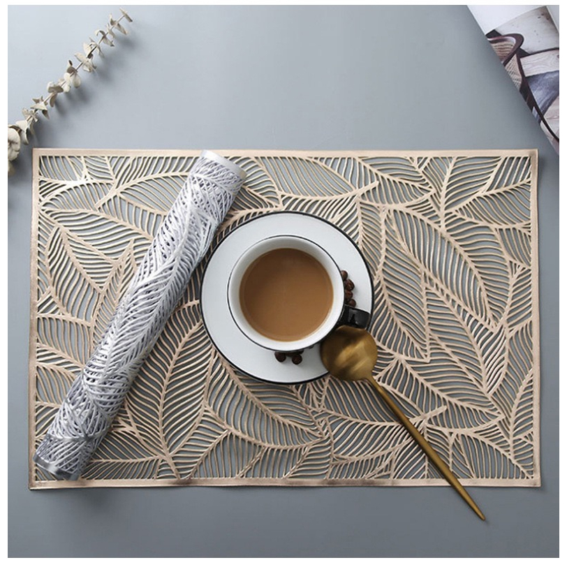 แผ่นรองจาน แผ่นรองโต๊ะอาหารสีทอง PU กันความร้อน กันน้ำ น้ำไม่ซึม แผ่นรองจานหนังPU ปูโต๊ะ ปูตู้ แผ่นปูโต๊ะ ผ้ารองจาน