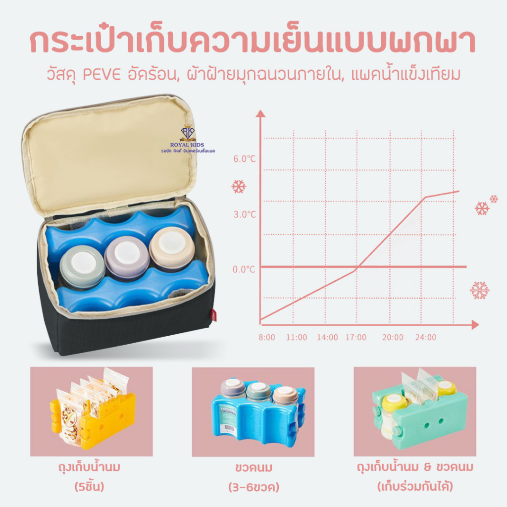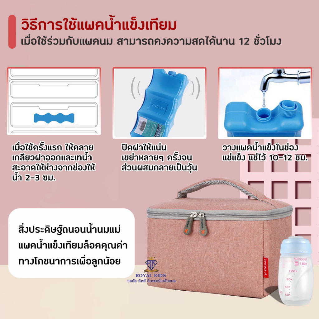 M001 กระเป๋าคุณแม่ กระเป๋าเก็บความเย็น v-coool ใส่ขวดนม เก็บนมแม่ แถมฟรี ไอซ์เจล 2 ซอง