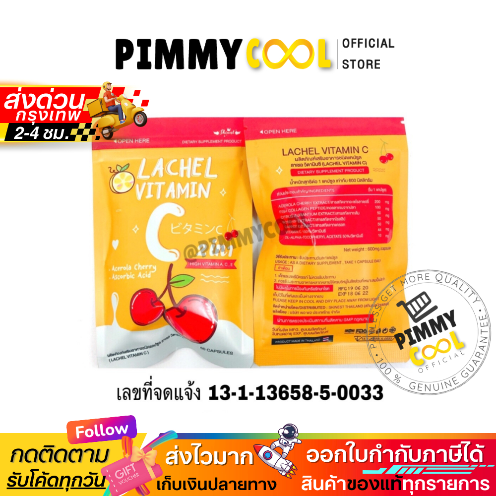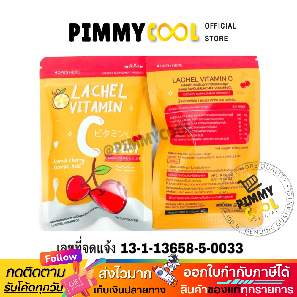 LACHEL VITAMIN C ลาเชล ซี วิตามินซี อาหารเสริมบำรุงผิว เพื่อความงาม 60 แคปซูล