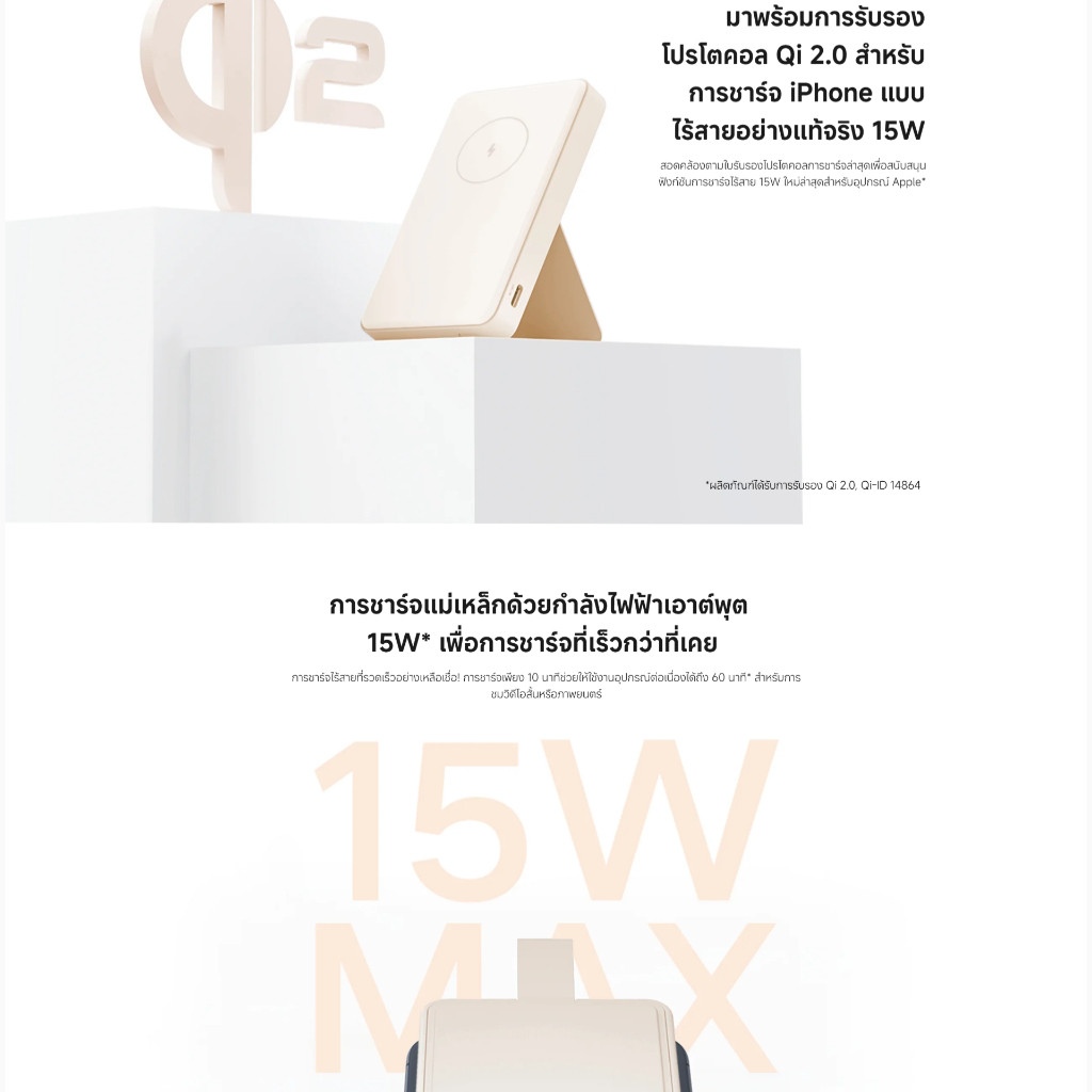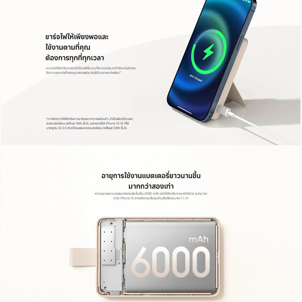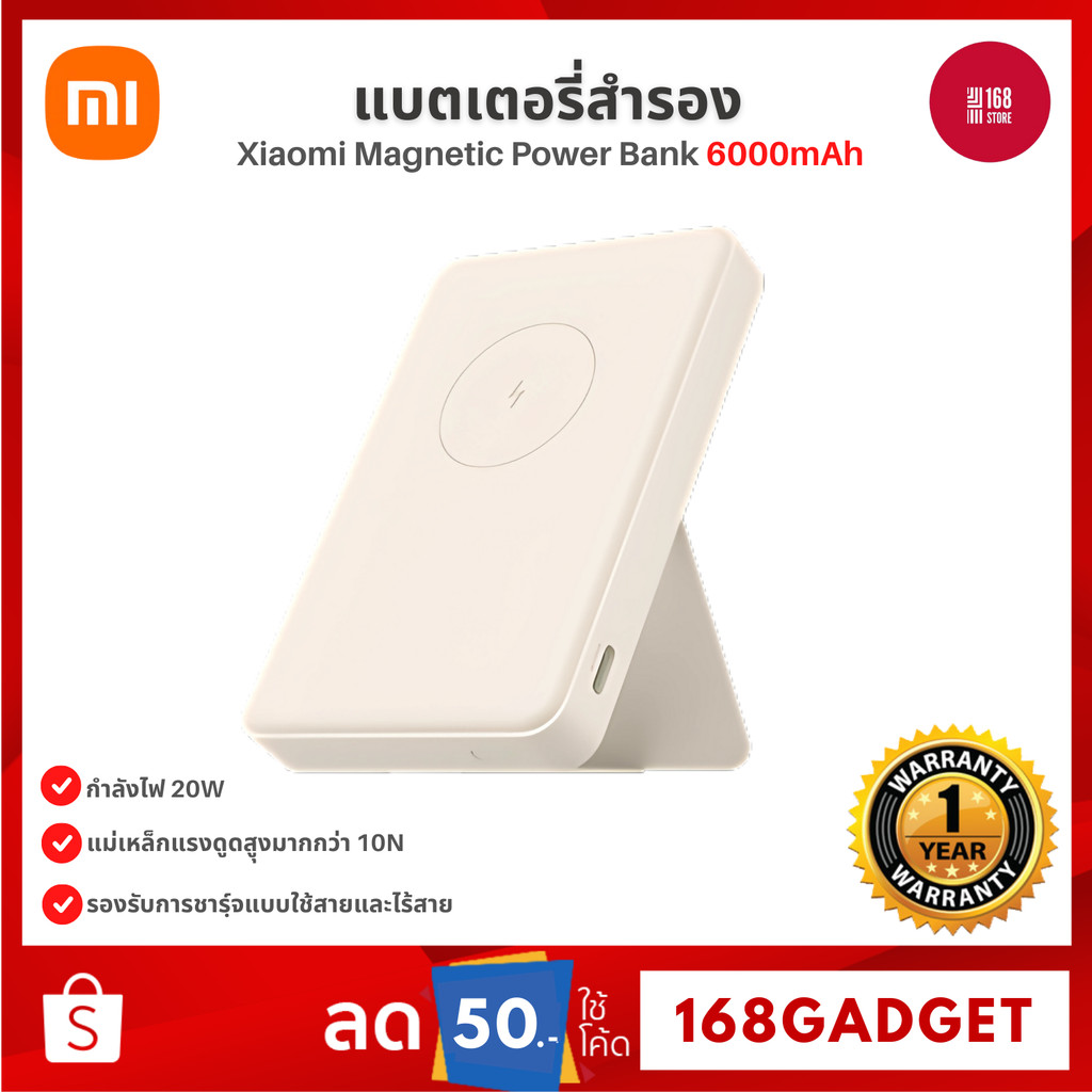 Xiaomi Magnetic Power Bank 6000mAh แบตสํารอง ขาตั้งในตัว รองรับการชาร์จทั้งแบบใช้สายและแบบไร้สาย