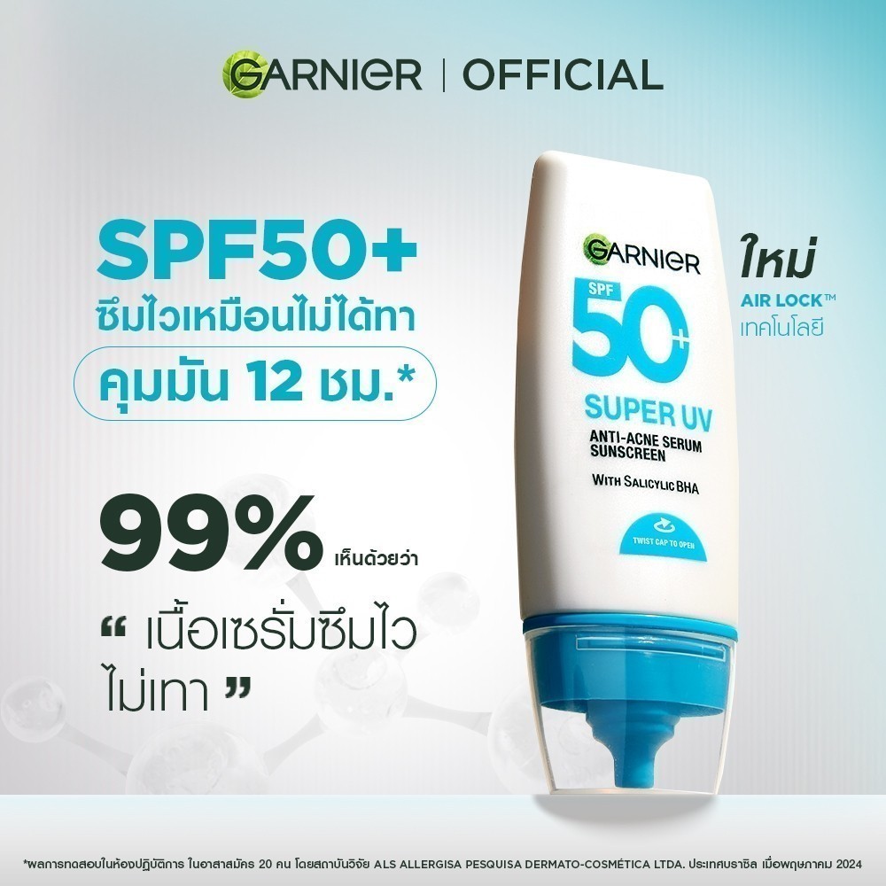 ใหม่! การ์นิเย่ ซูเปอร์ ยูวี แอนตี้-แอคเน่ เซรั่ม ซันสกรีน 30มล.x2 GARNIER SUPER UV ANTI-ACNE SERUM SUNSCREEN 30mlx2