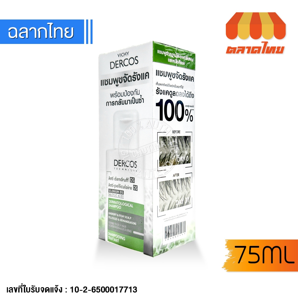 วิชี่ แชมพู ขจัดรังแค ลดผมขาดหลุดร่วง Vichy Dercos Anti-Dandruff /Energy+Aminexil Shampoo 75/200 มล.