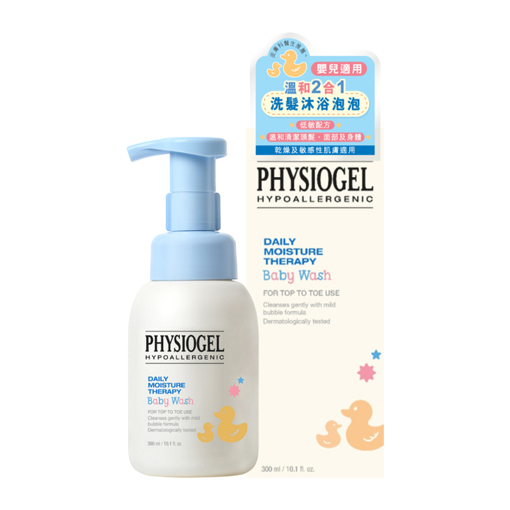 PHYSIOGEL Daily Moisture Therapy Baby Wash (Top to Toe) 300ml. ฟิสิโอเจล เดลี่ มอยซ์เจอร์ ผลิตภัณฑ์ทำความสะอาดสำหรับเด็ก