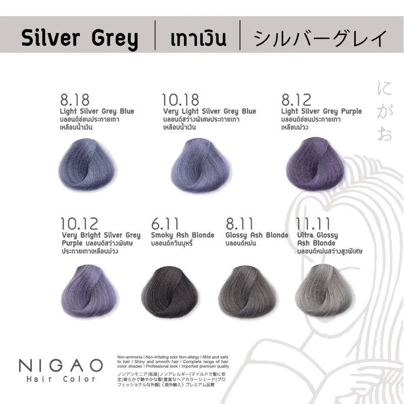 Nigao Hair color Silver Gray นิกาโอะ แฮร์คัลเลอร์ ครบทุกเบอร์