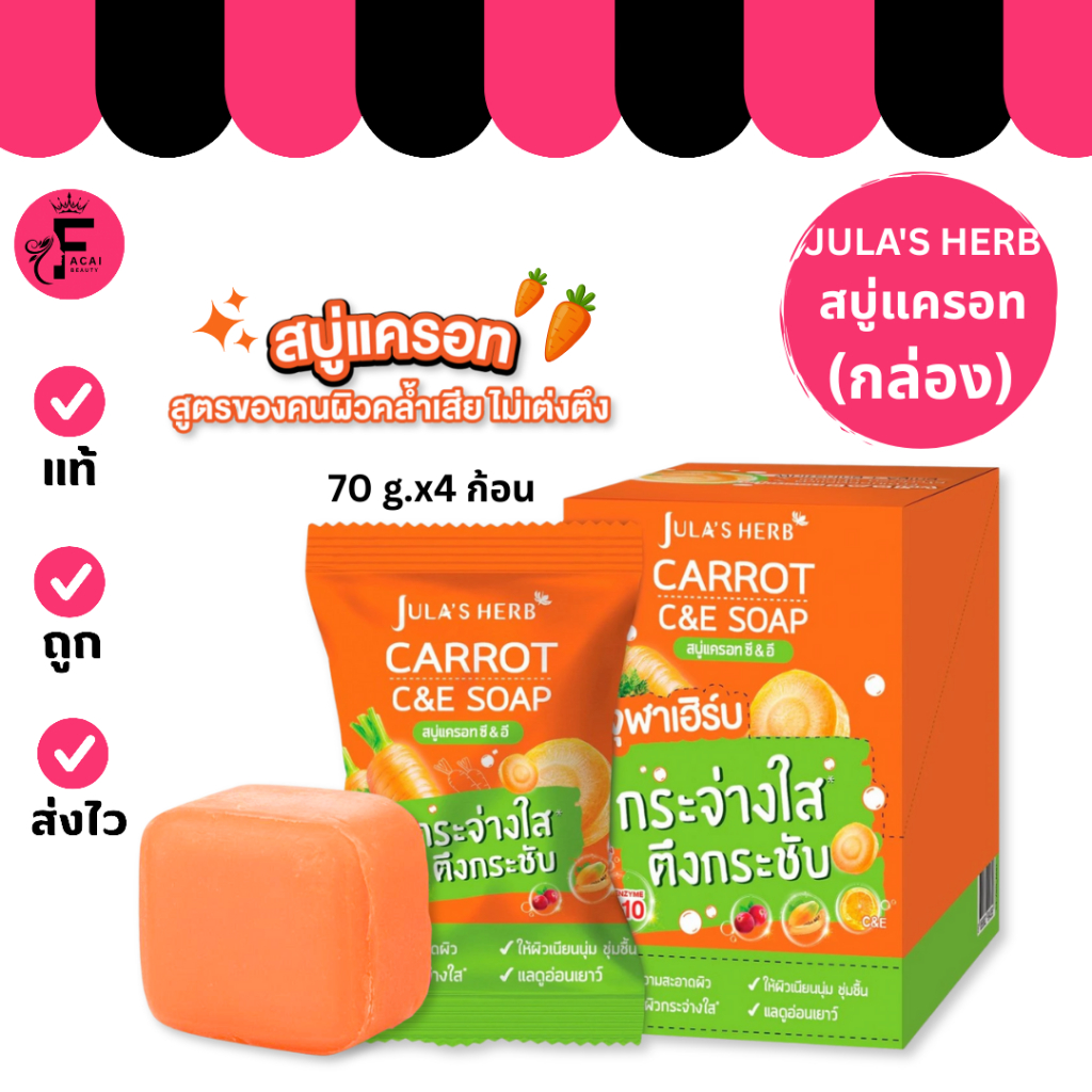 (กล่อง 4 ก้อน) Jula’s Herb Carrot C&E Soap จุฬาเฮิร์บ สบู่แครอท ซีแอนด์อี (70 g.)