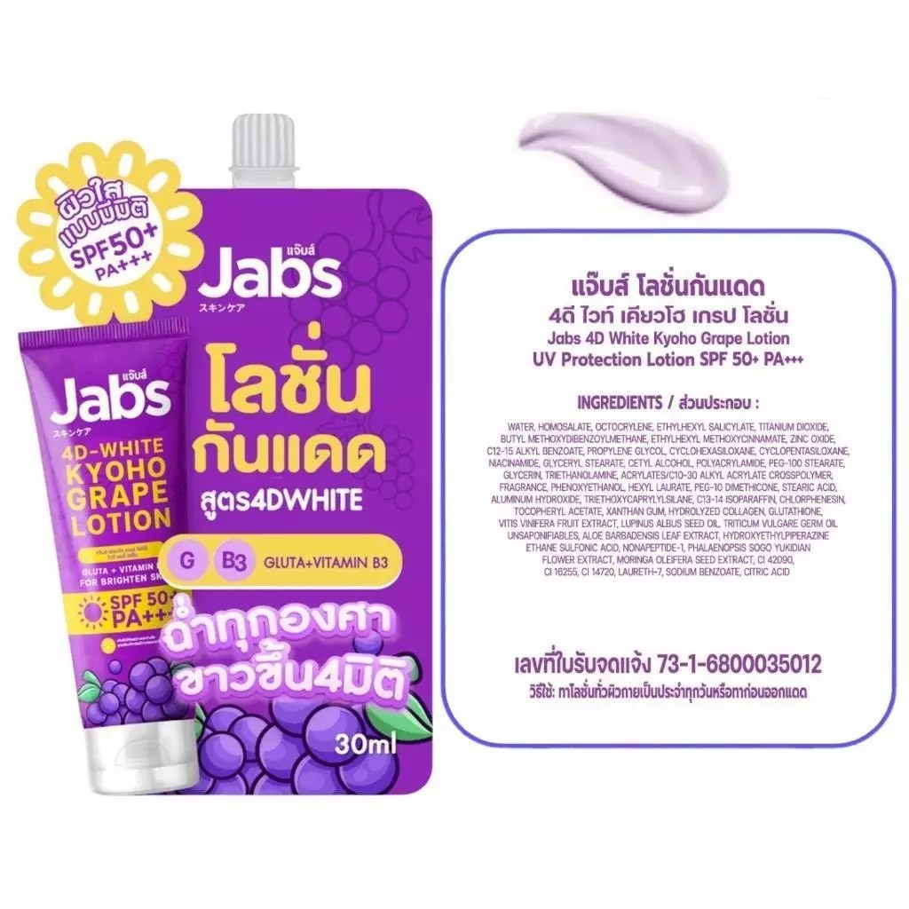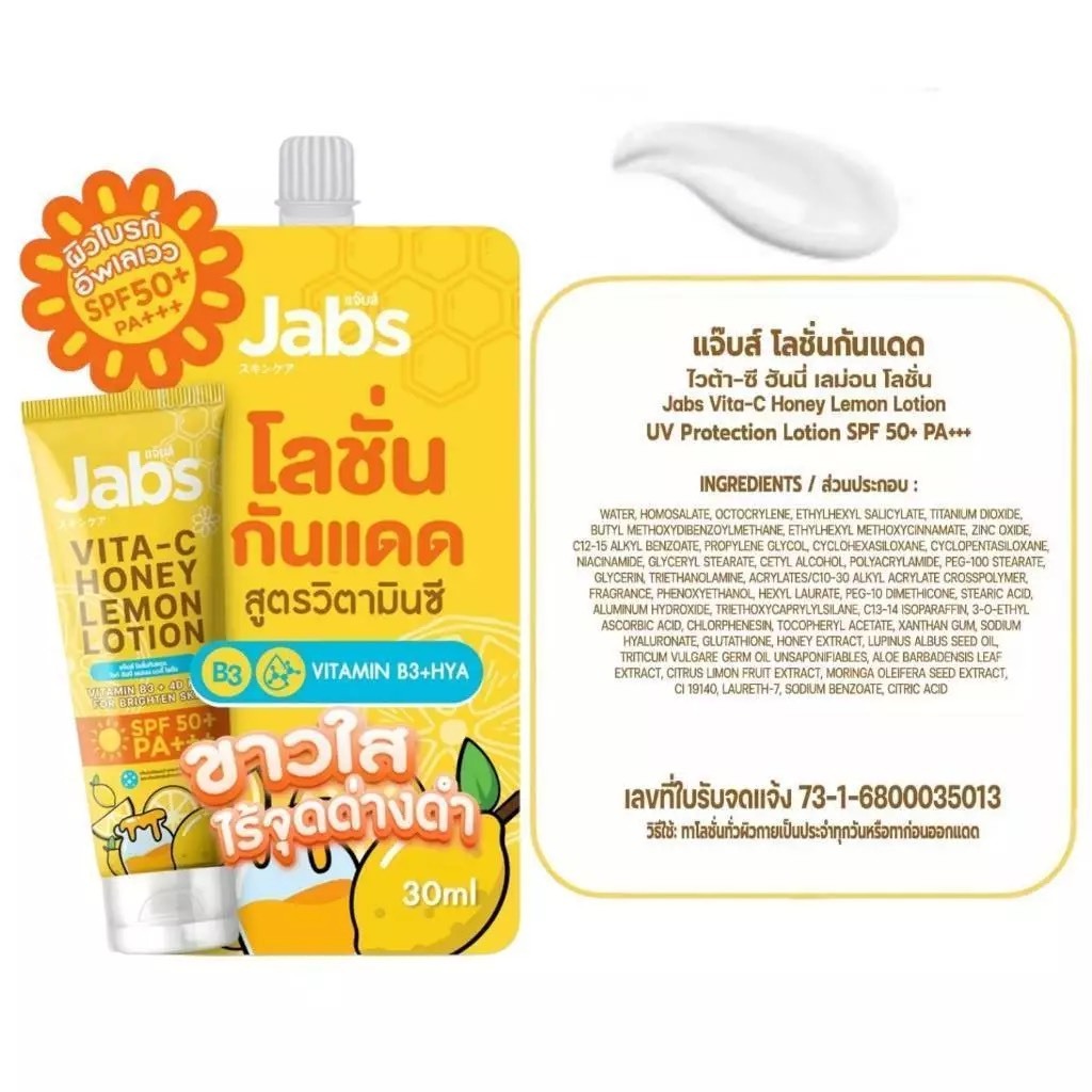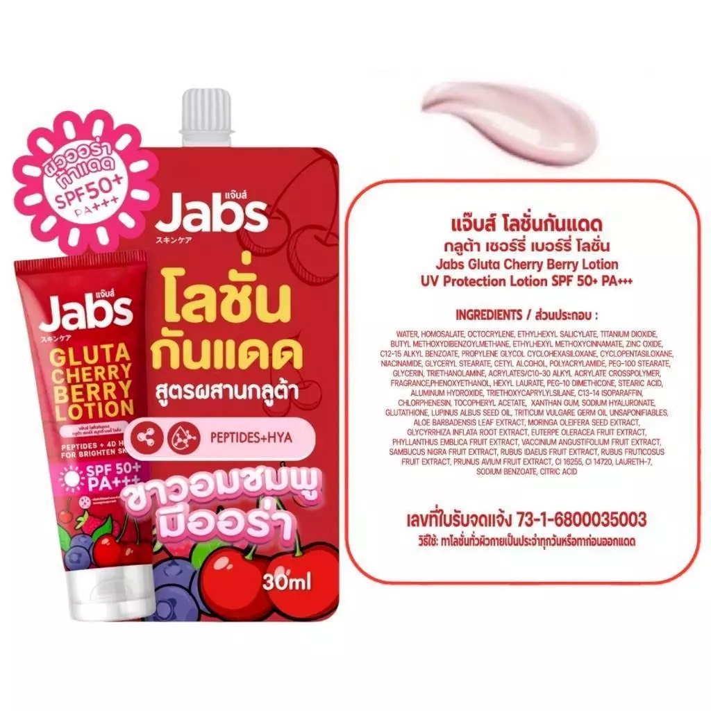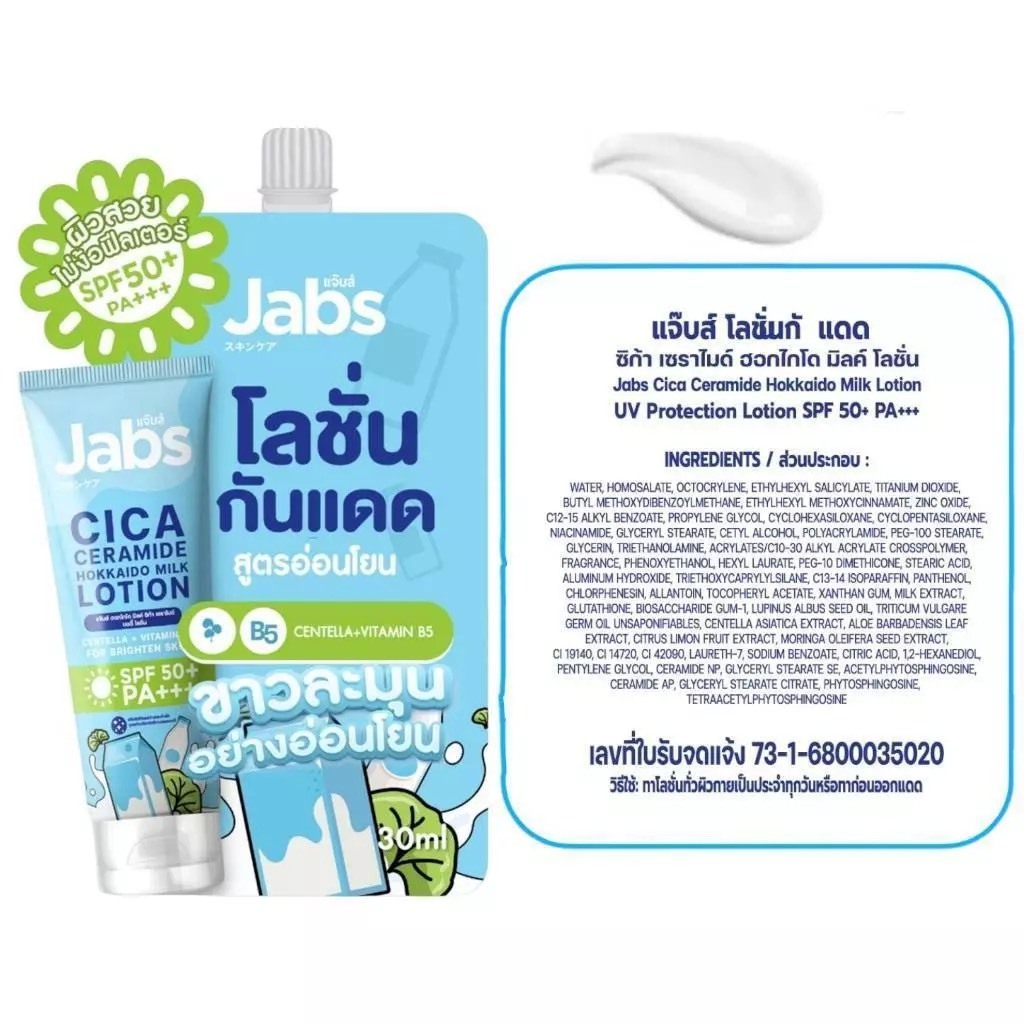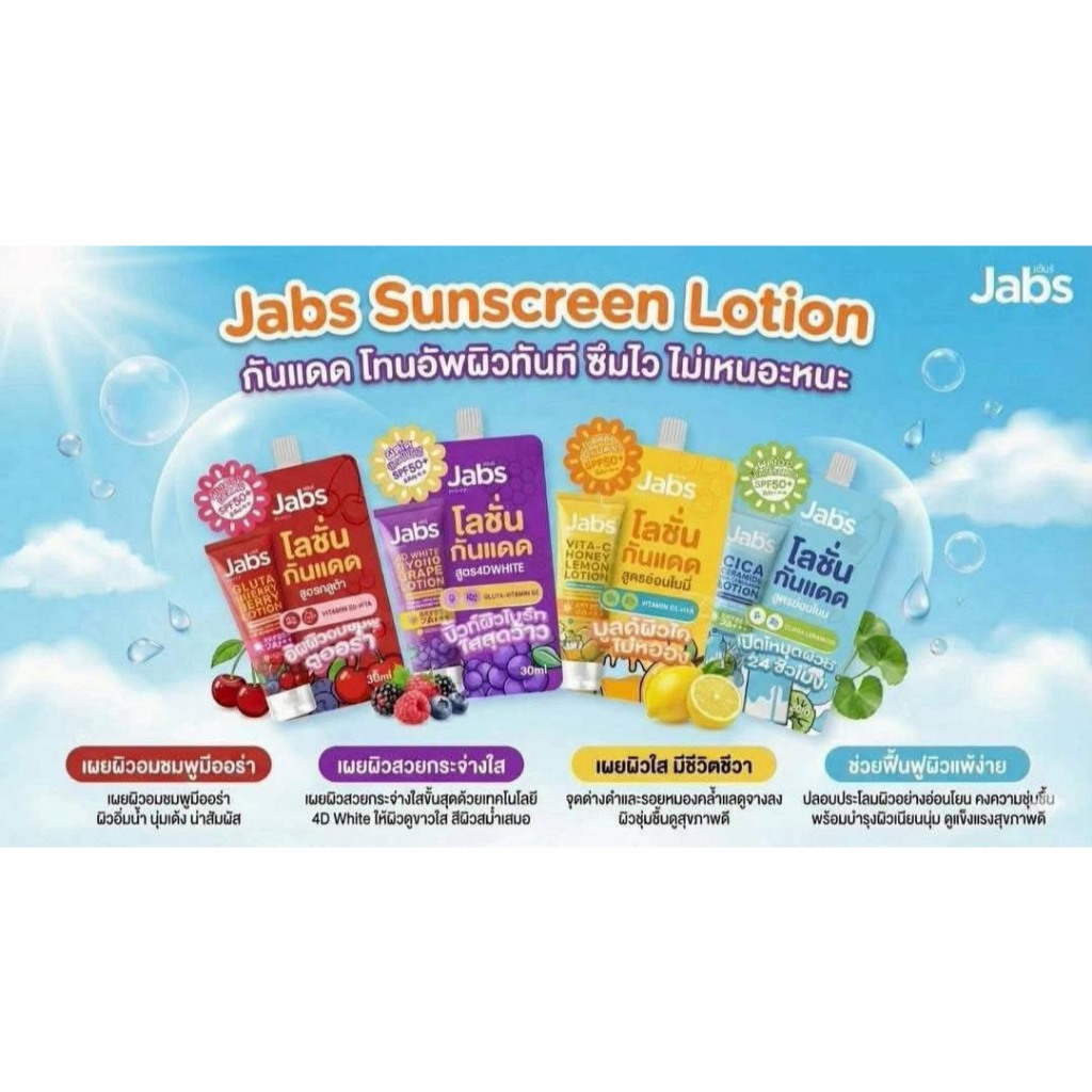 โลชั่นกันแดด แจ๊บส์ Jabs Hybrid Sunscreen SPF50+PA+++ ( ซอง ) มีให้เลือก 4 สูตร