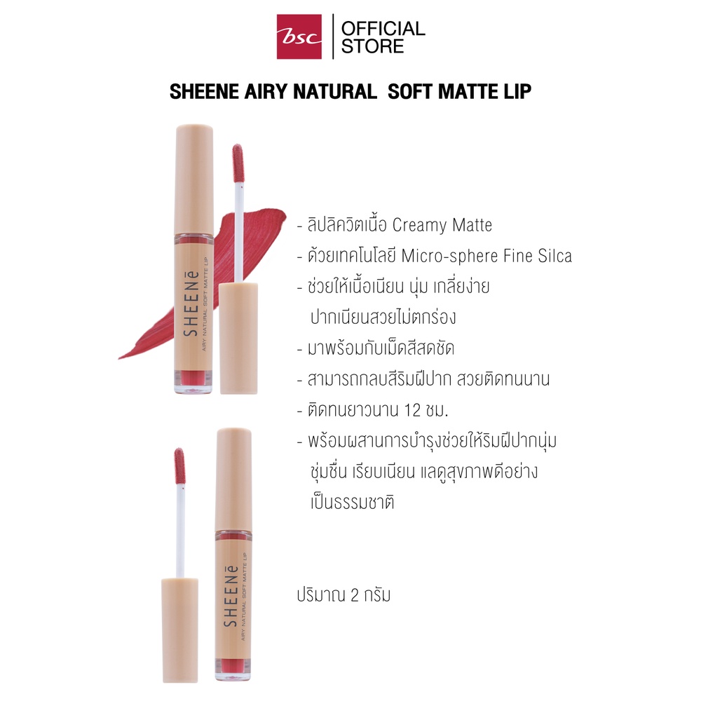 SHEENE AIRY NATURAL SOFT MATTE LIP ลิปลิควิตเนื้อ Creamy Matte ด้วยเทคโนโลยี Micro-sphere Fine Silca ช่วยให้เนื้อเนียน