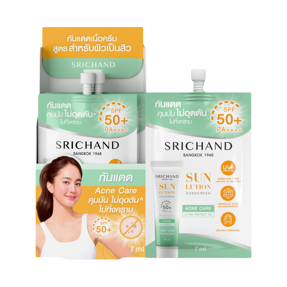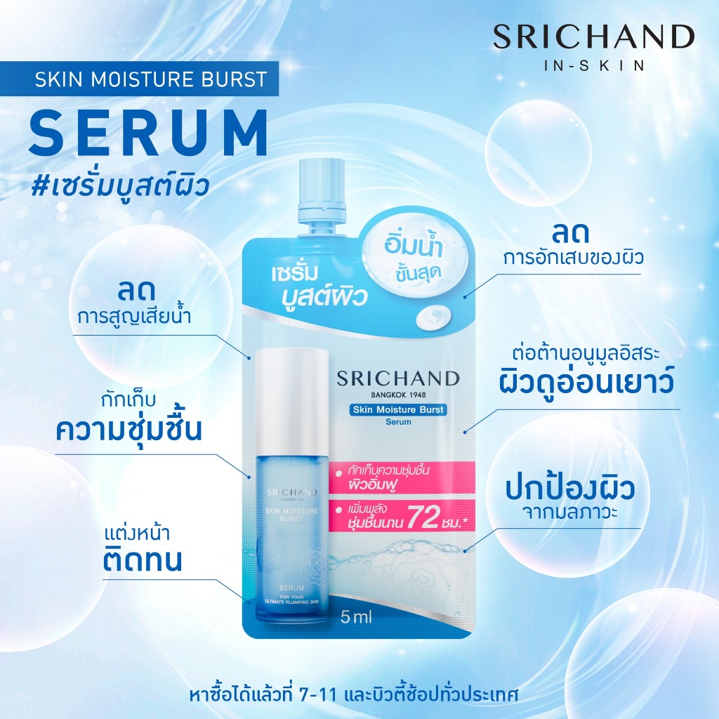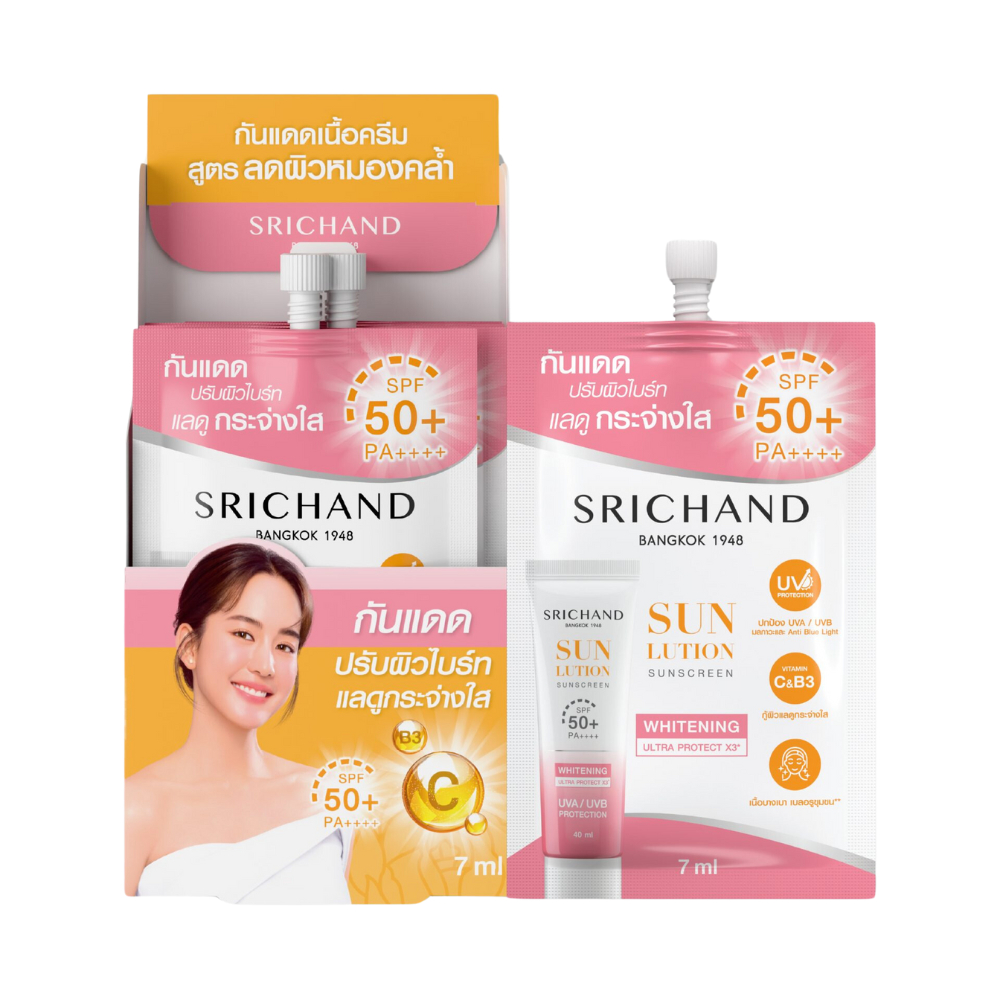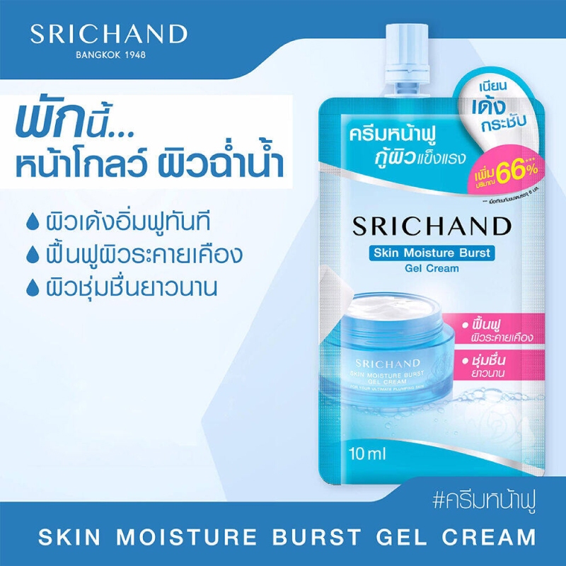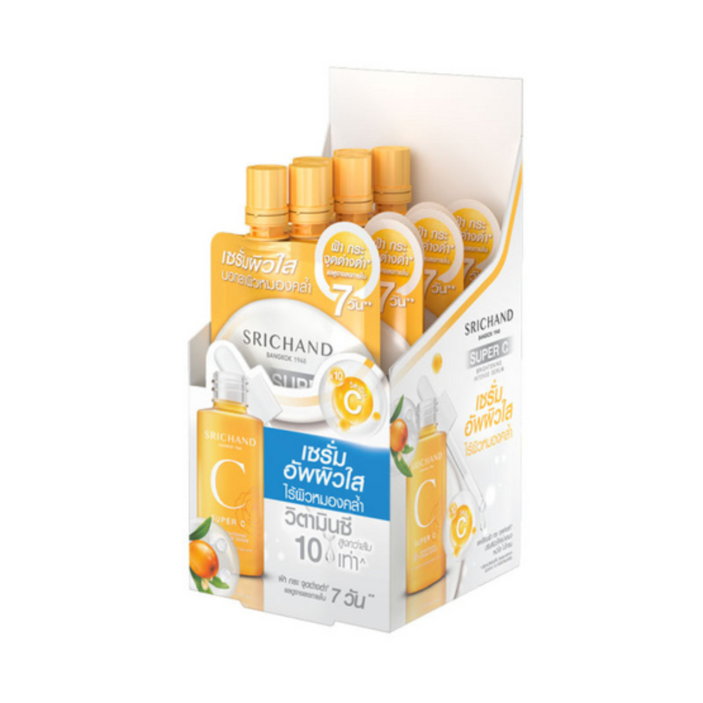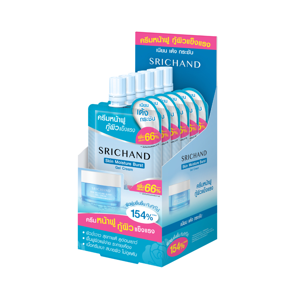 (1 กล่อง/ 6 ซอง) ศรีจันทร์ มอยส์เจอร์ เบิร์ส เจลครีม / ซุปเปอร์ ซี ไบร์ทเทนนิ่ง เซรั่ม / กันแดด ครีมซองศรีจันทร์